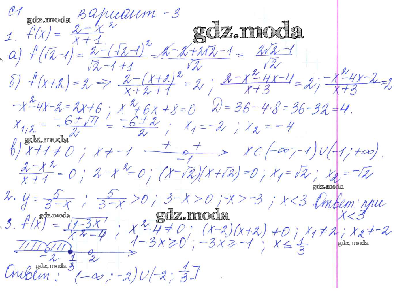 ОТВЕТ на задание № Вариант №3 Контрольные и самостоятельные работы по Алгебре 9 класс Журавлев УМК