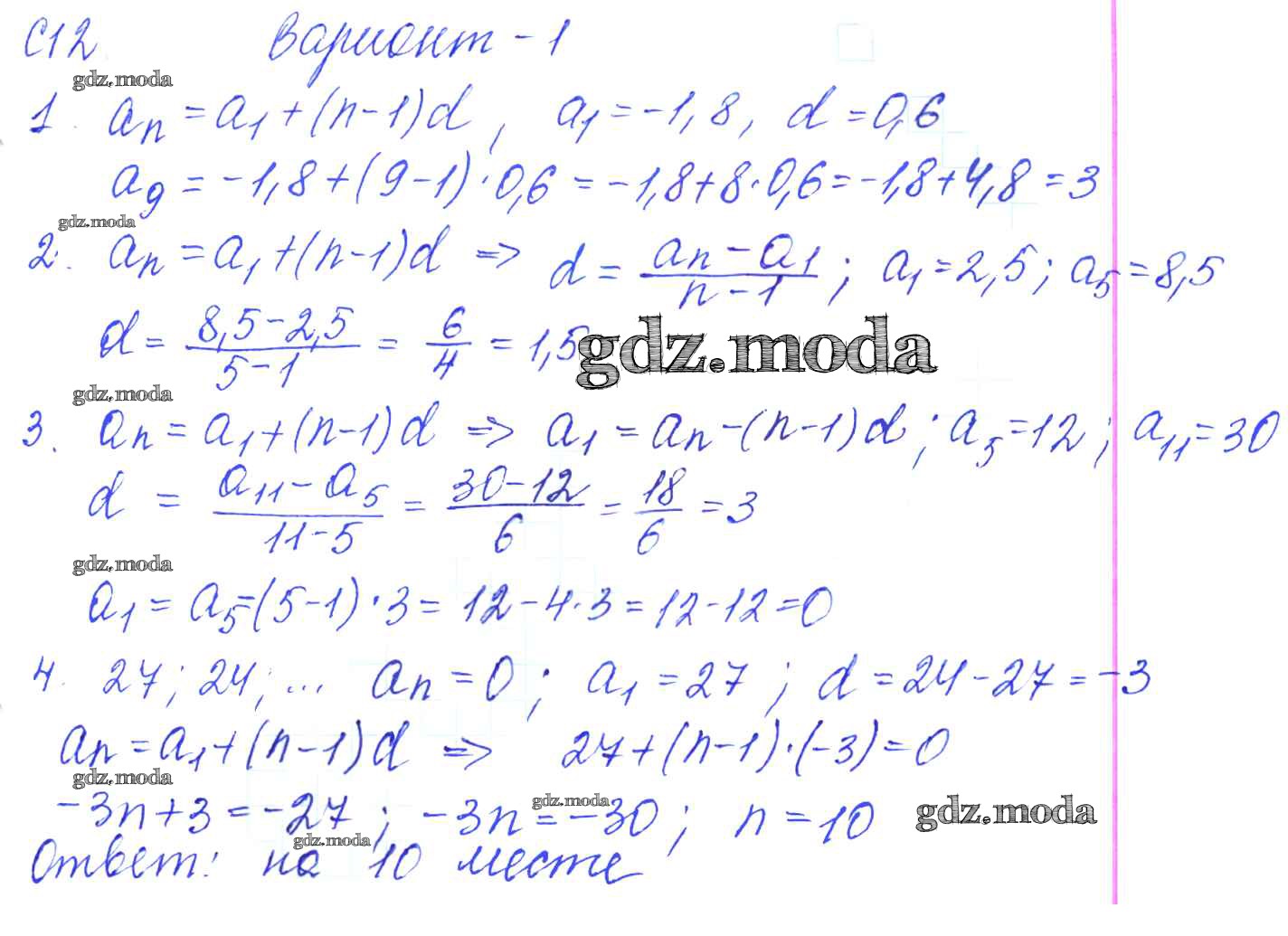 ОТВЕТ на задание № Вариант №1 Контрольные и самостоятельные работы по Алгебре 9 класс Журавлев УМК