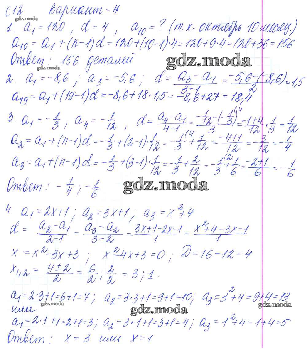 ОТВЕТ на задание № Вариант №4 Контрольные и самостоятельные работы по Алгебре 9 класс Журавлев УМК