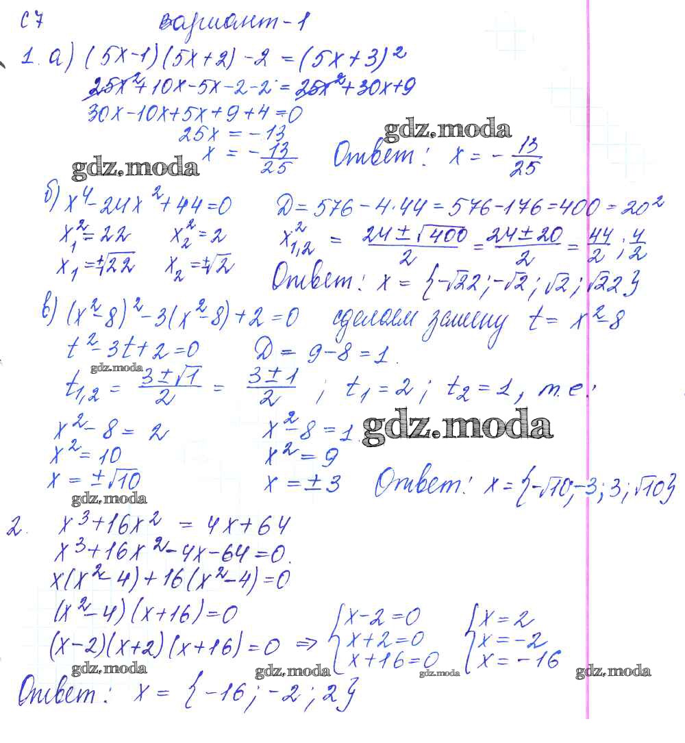 ОТВЕТ на задание № Вариант №1 Контрольные и самостоятельные работы по Алгебре 9 класс Журавлев УМК