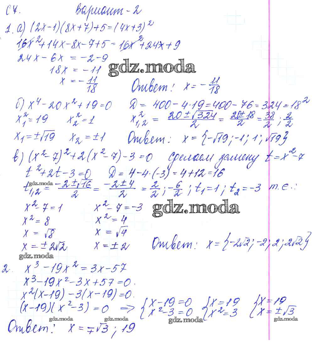 ОТВЕТ на задание № Вариант №2 Контрольные и самостоятельные работы по Алгебре 9 класс Журавлев УМК