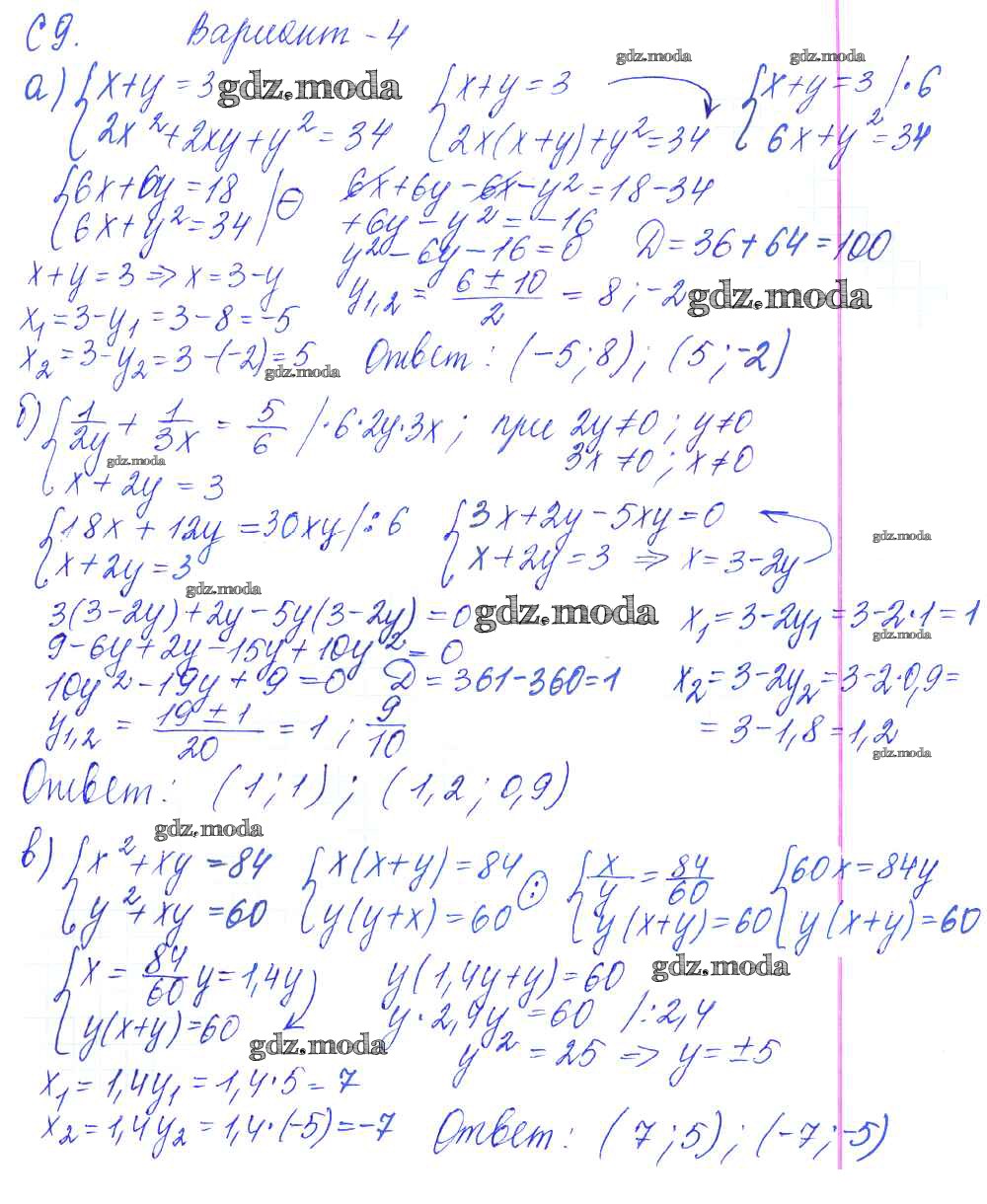 ОТВЕТ на задание № Вариант №4 Контрольные и самостоятельные работы по Алгебре 9 класс Журавлев УМК