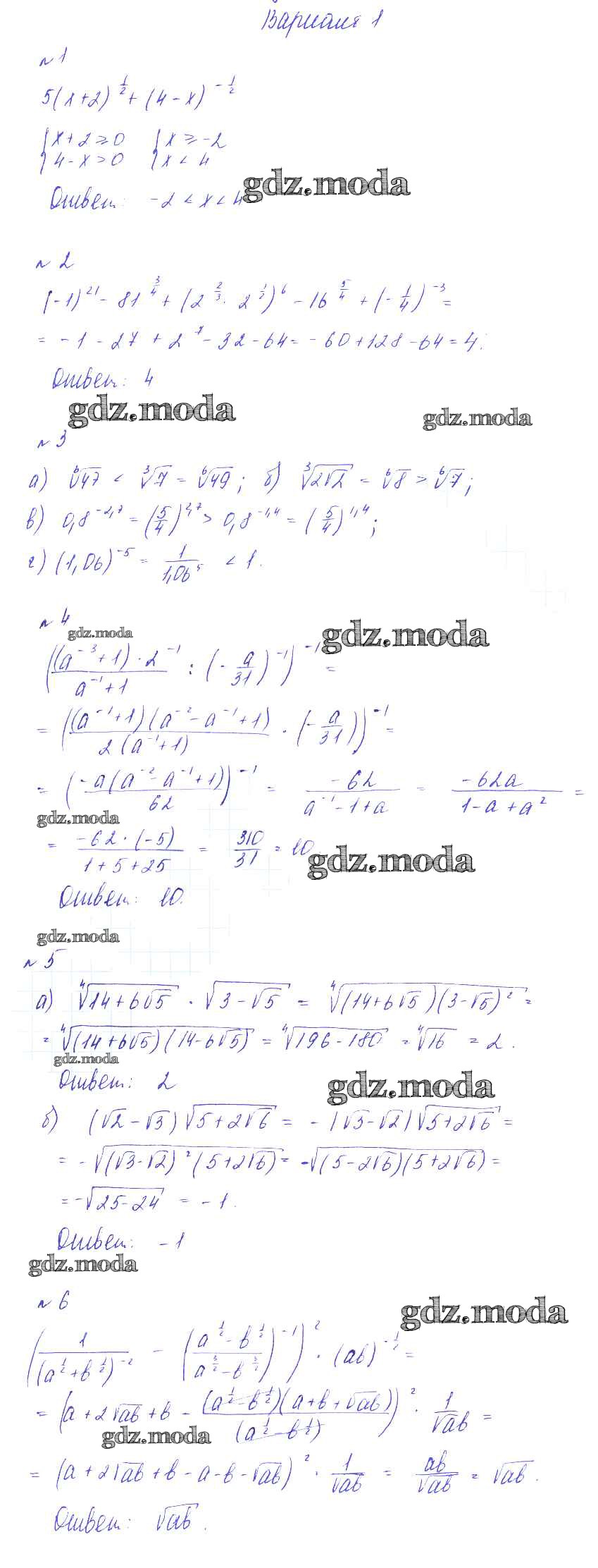 ГДЗ решение к заданию № вариант 1 Алгебра 9 класс Дидактические материалы Зив Б.Г. Виктория плюс 2013 ФГОС бесплатно на гдз.мода!