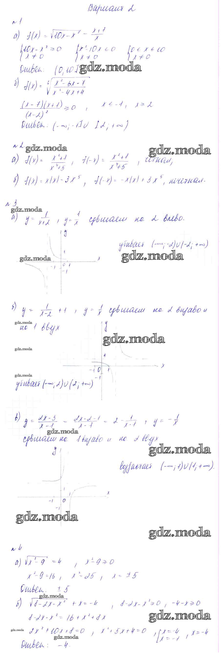 ГДЗ решение к заданию № вариант 2 Алгебра 9 класс Дидактические материалы Зив Б.Г. Виктория плюс 2013 ФГОС бесплатно на гдз.мода!