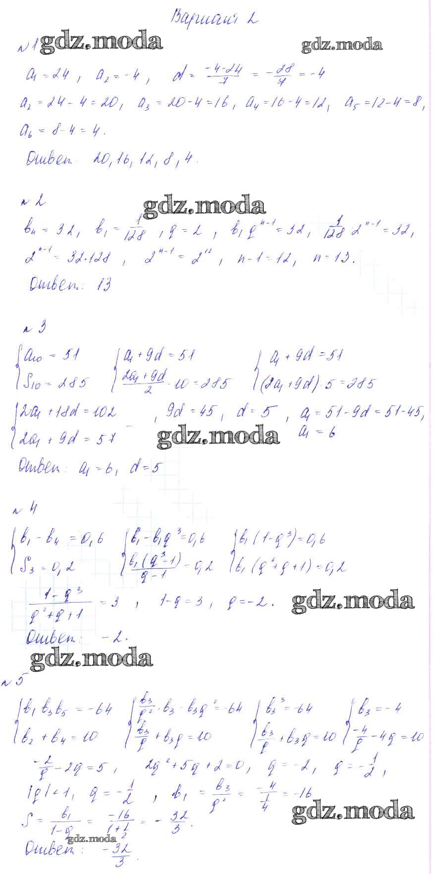 ГДЗ решение к заданию № вариант 2 Алгебра 9 класс Дидактические материалы Зив Б.Г. Виктория плюс 2013 ФГОС бесплатно на гдз.мода!