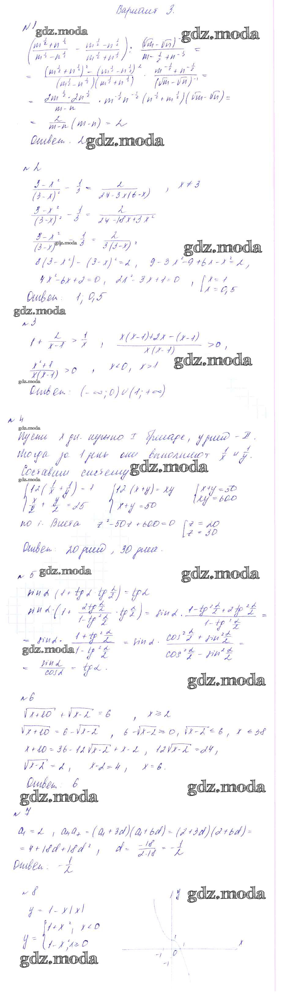ГДЗ решение к заданию № вариант 3 Алгебра 9 класс Дидактические материалы Зив Б.Г. Виктория плюс 2013 ФГОС бесплатно на гдз.мода!