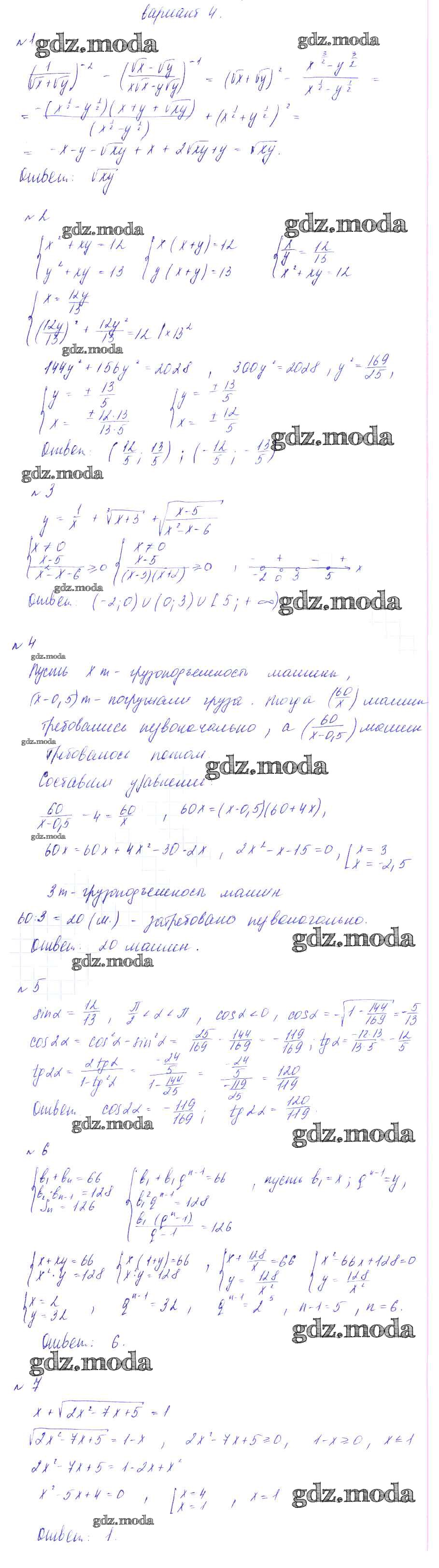 ГДЗ решение к заданию № вариант 4 Алгебра 9 класс Дидактические материалы Зив Б.Г. Виктория плюс 2013 ФГОС бесплатно на гдз.мода!