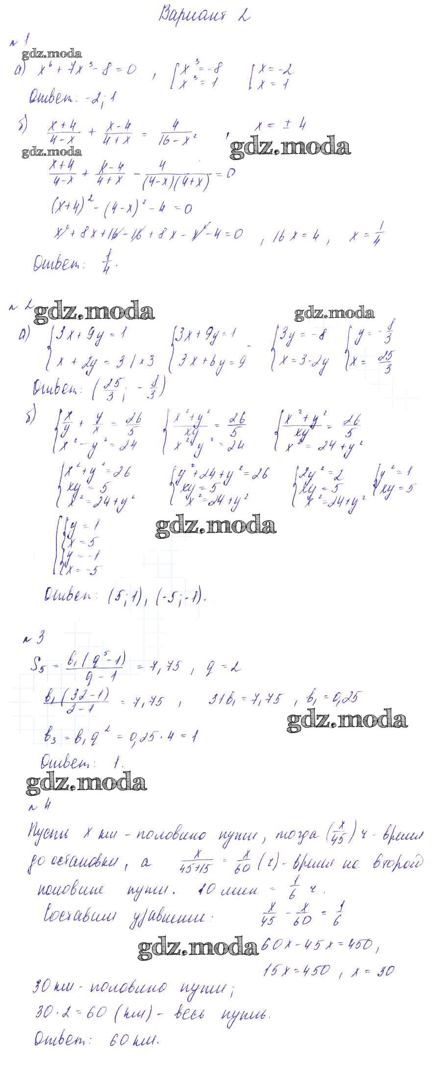 ГДЗ решение к заданию № вариант 2 Алгебра 9 класс Дидактические материалы Зив Б.Г. Виктория плюс 2013 ФГОС бесплатно на гдз.мода!