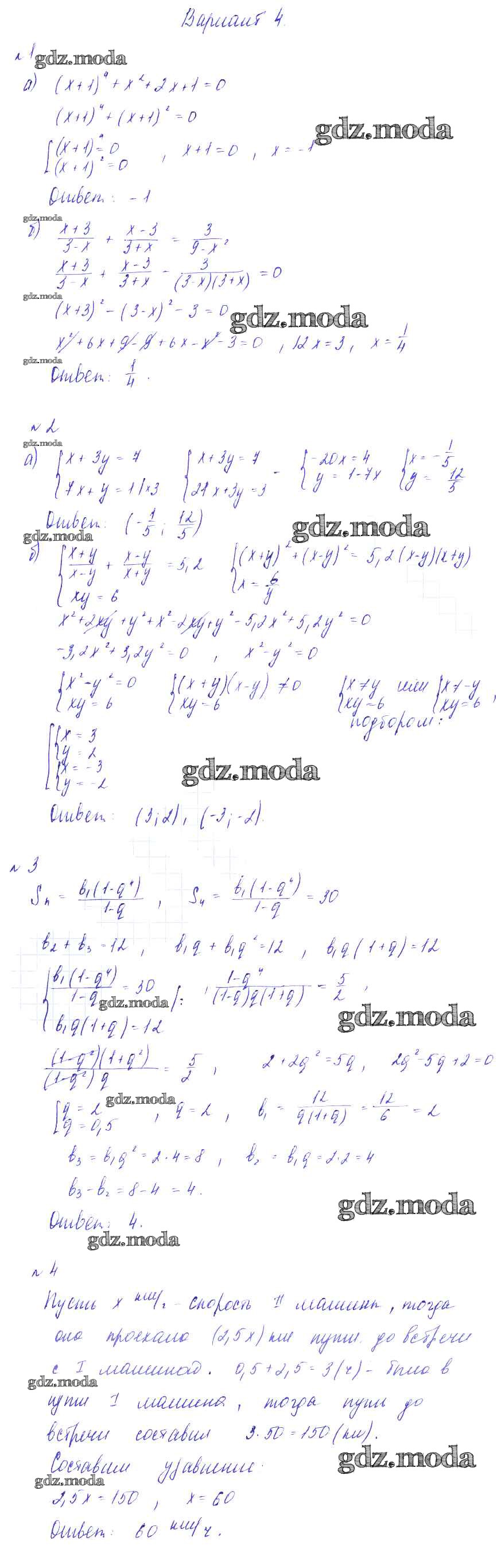 ГДЗ решение к заданию № вариант 4 Алгебра 9 класс Дидактические материалы Зив Б.Г. Виктория плюс 2013 ФГОС бесплатно на гдз.мода!