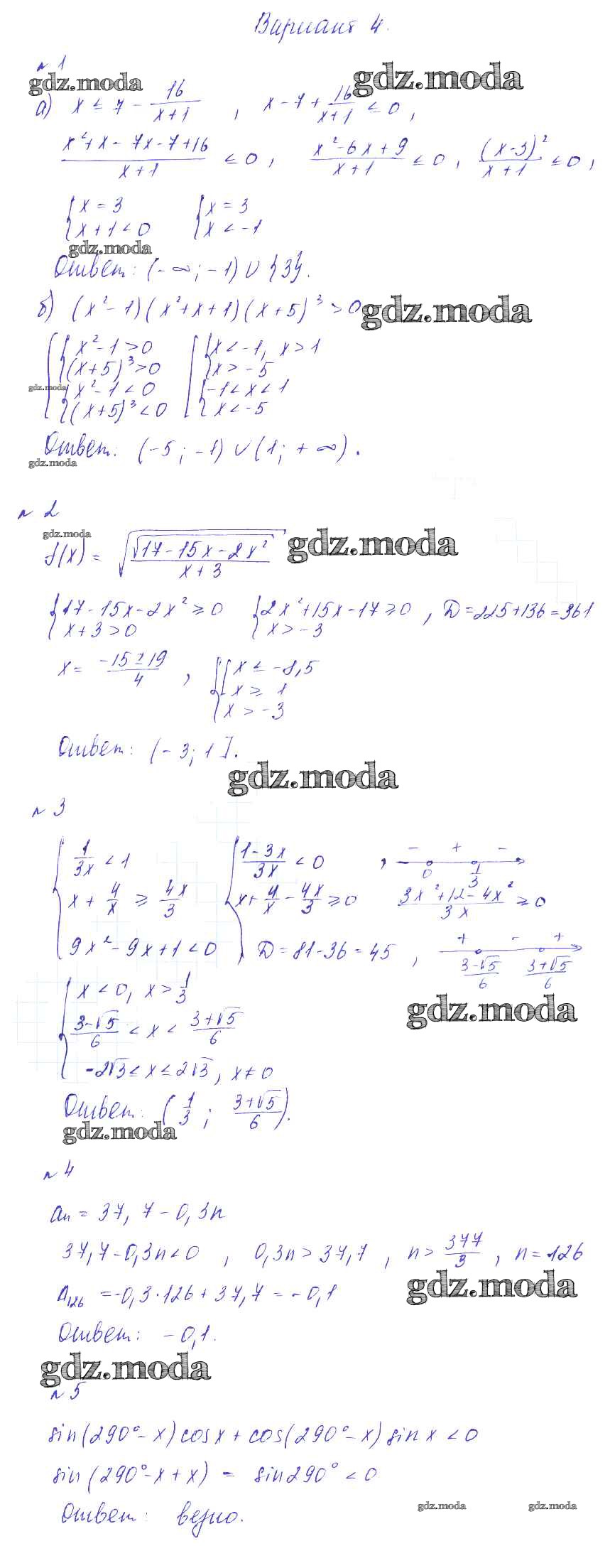 ГДЗ решение к заданию № вариант 4 Алгебра 9 класс Дидактические материалы Зив Б.Г. Виктория плюс 2013 ФГОС бесплатно на гдз.мода!