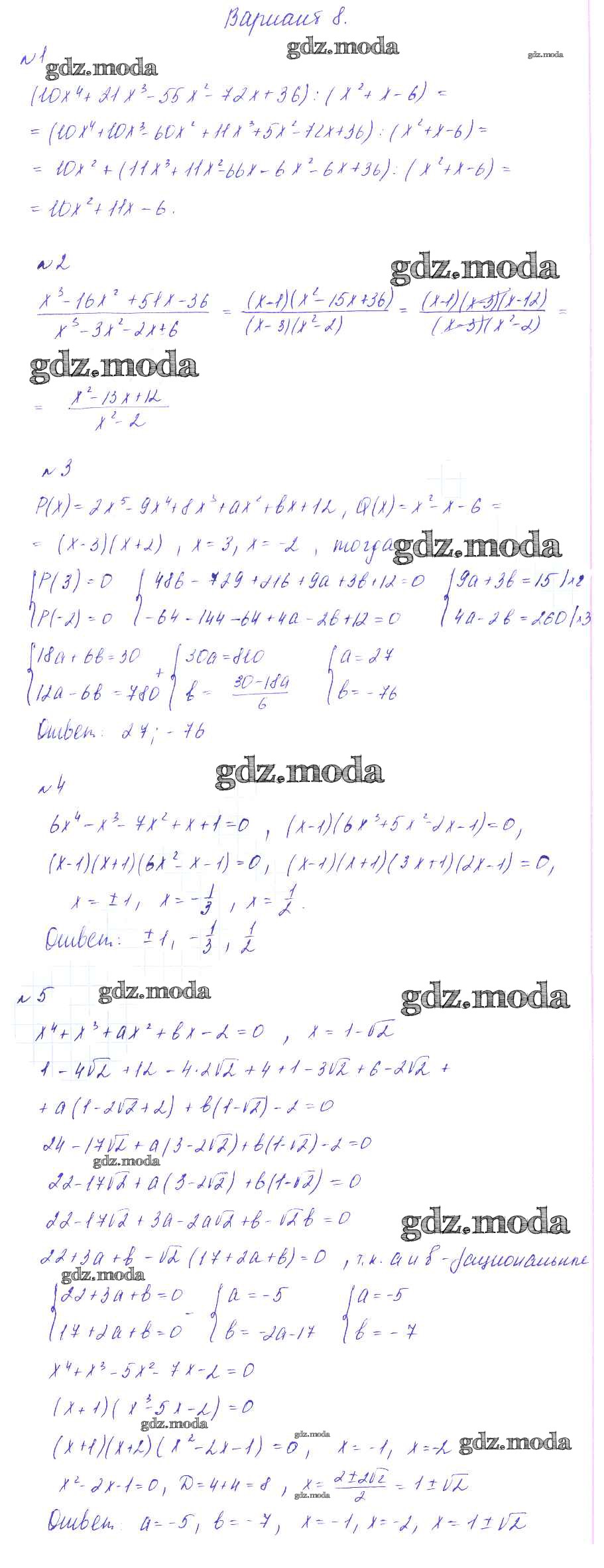 ГДЗ решение к заданию № вариант 8 Алгебра 9 класс Дидактические материалы Зив Б.Г. Виктория плюс 2013 ФГОС бесплатно на гдз.мода!
