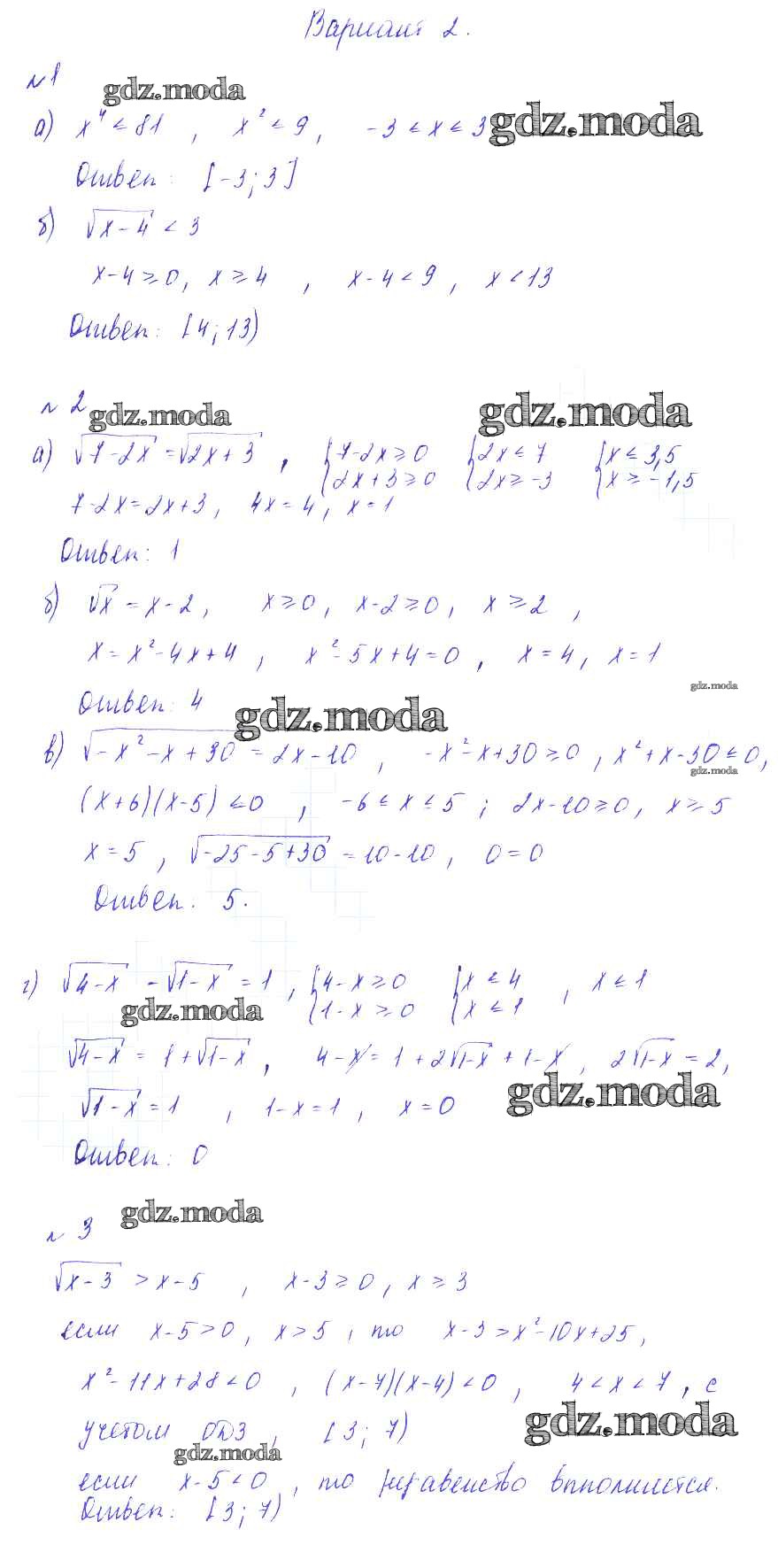 ГДЗ решение к заданию № вариант 2 Алгебра 9 класс Дидактические материалы Зив Б.Г. Виктория плюс 2013 ФГОС бесплатно на гдз.мода!
