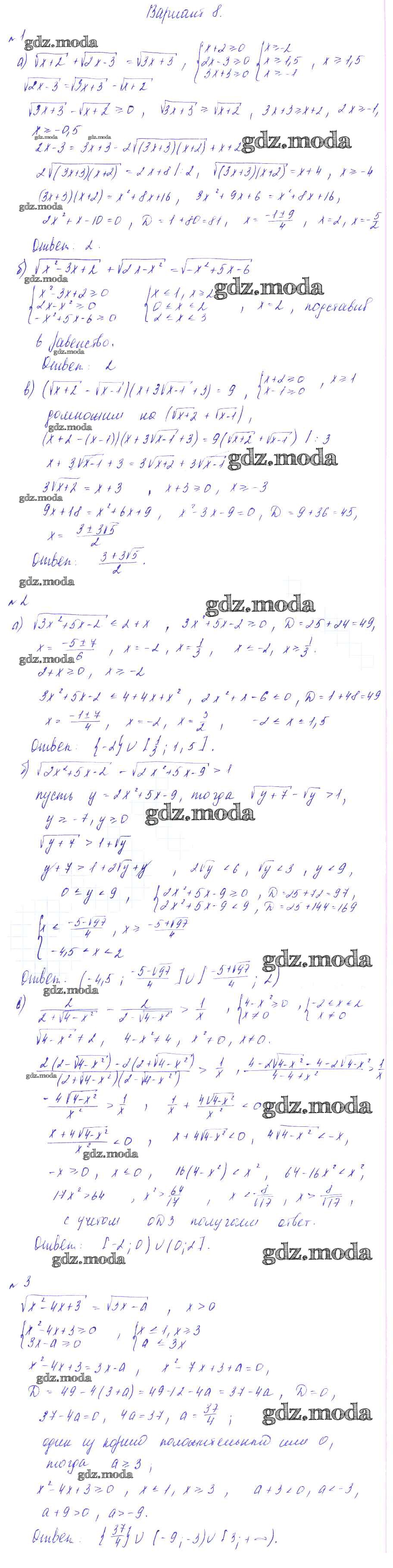 ГДЗ решение к заданию № вариант 8 Алгебра 9 класс Дидактические материалы Зив Б.Г. Виктория плюс 2013 ФГОС бесплатно на гдз.мода!