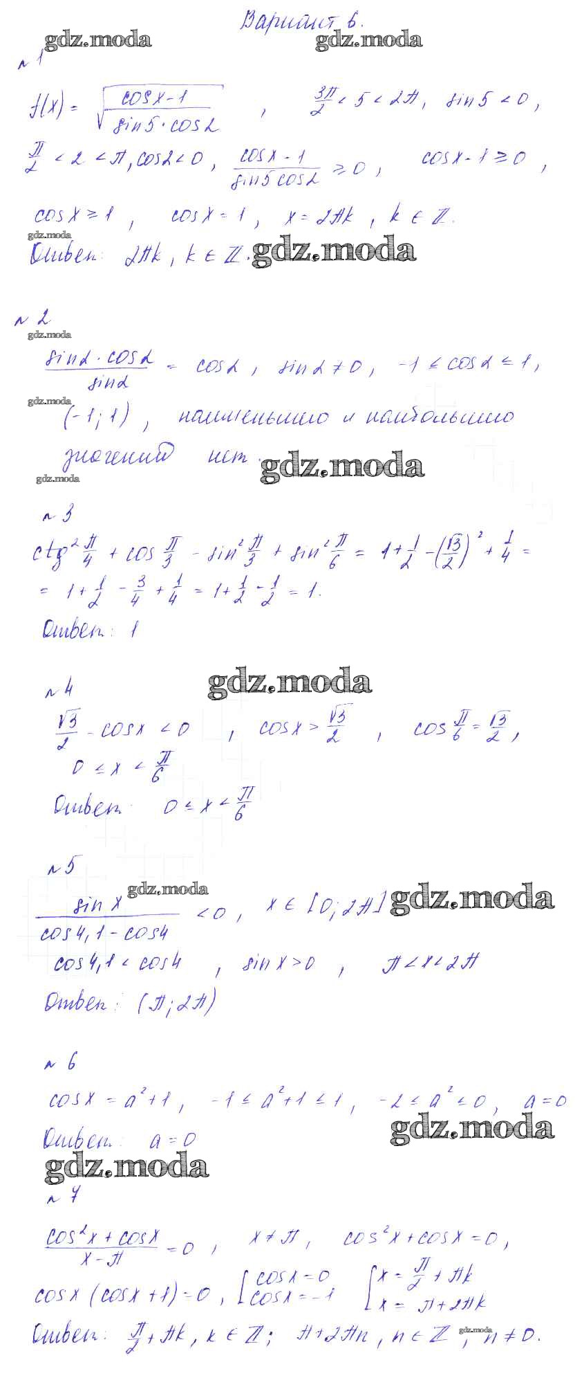 ГДЗ решение к заданию № вариант 6 Алгебра 9 класс Дидактические материалы Зив Б.Г. Виктория плюс 2013 ФГОС бесплатно на гдз.мода!