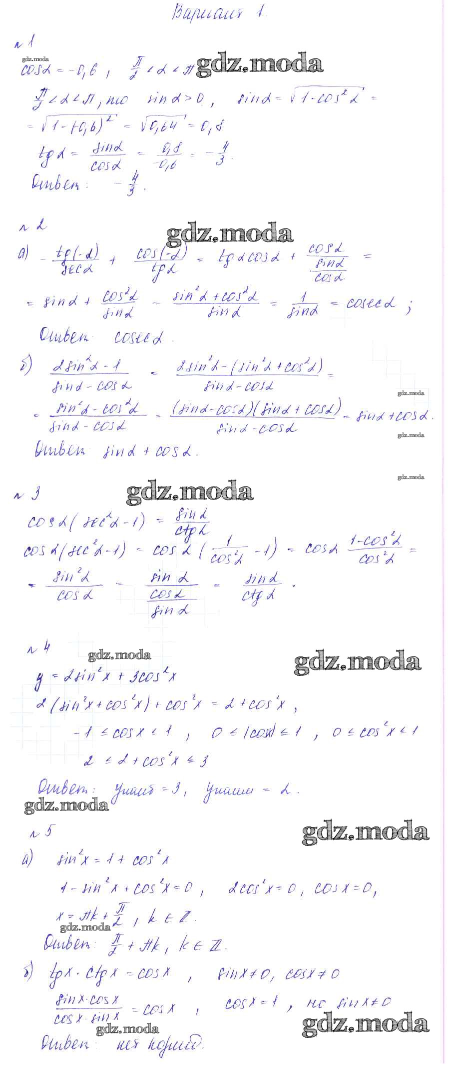 ГДЗ решение к заданию № вариант 1 Алгебра 9 класс Дидактические материалы Зив Б.Г. Виктория плюс 2013 ФГОС бесплатно на гдз.мода!