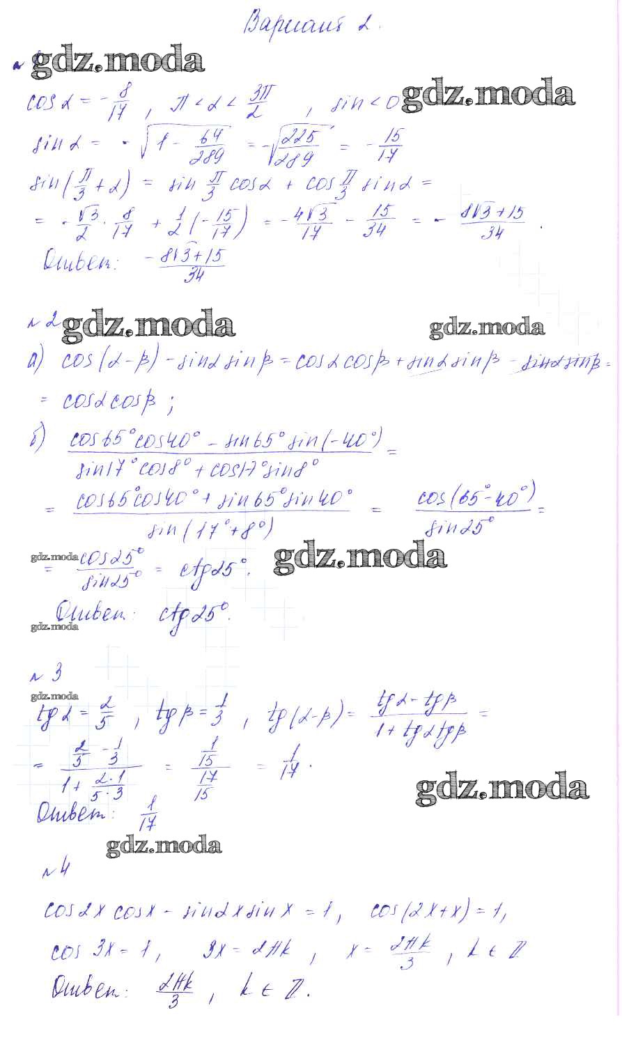 ГДЗ решение к заданию № вариант 2 Алгебра 9 класс Дидактические материалы Зив Б.Г. Виктория плюс 2013 ФГОС бесплатно на гдз.мода!