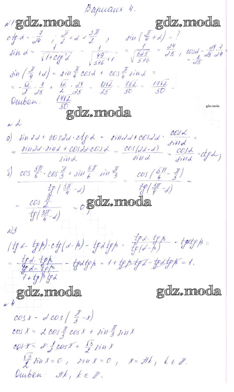 ГДЗ решение к заданию № вариант 4 Алгебра 9 класс Дидактические материалы Зив Б.Г. Виктория плюс 2013 ФГОС бесплатно на гдз.мода!