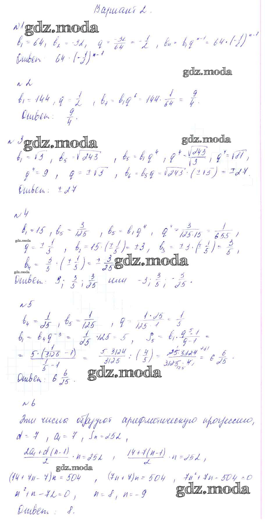 ГДЗ решение к заданию № вариант 2 Алгебра 9 класс Дидактические материалы Зив Б.Г. Виктория плюс 2013 ФГОС бесплатно на гдз.мода!
