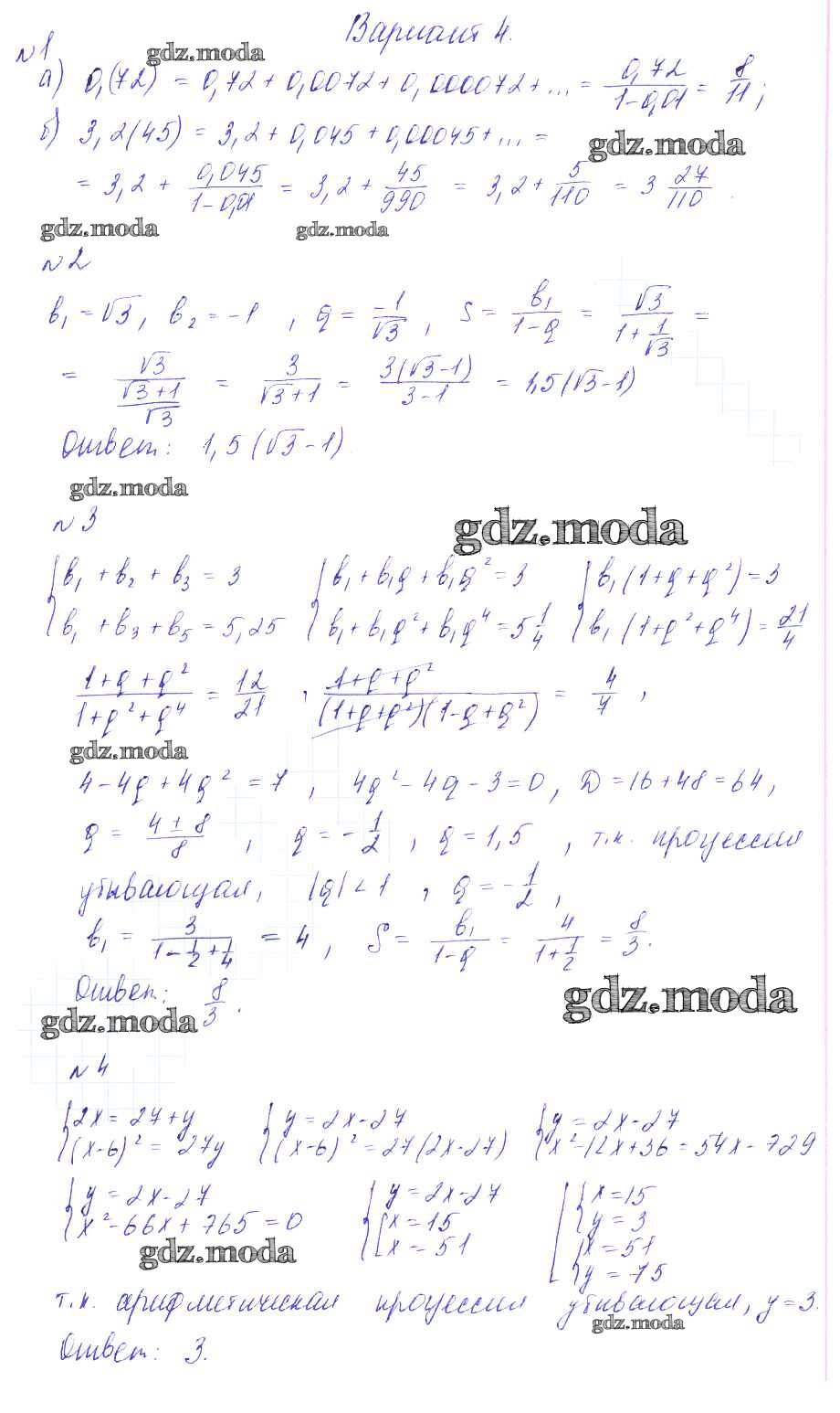 ГДЗ решение к заданию № вариант 4 Алгебра 9 класс Дидактические материалы Зив Б.Г. Виктория плюс 2013 ФГОС бесплатно на гдз.мода!