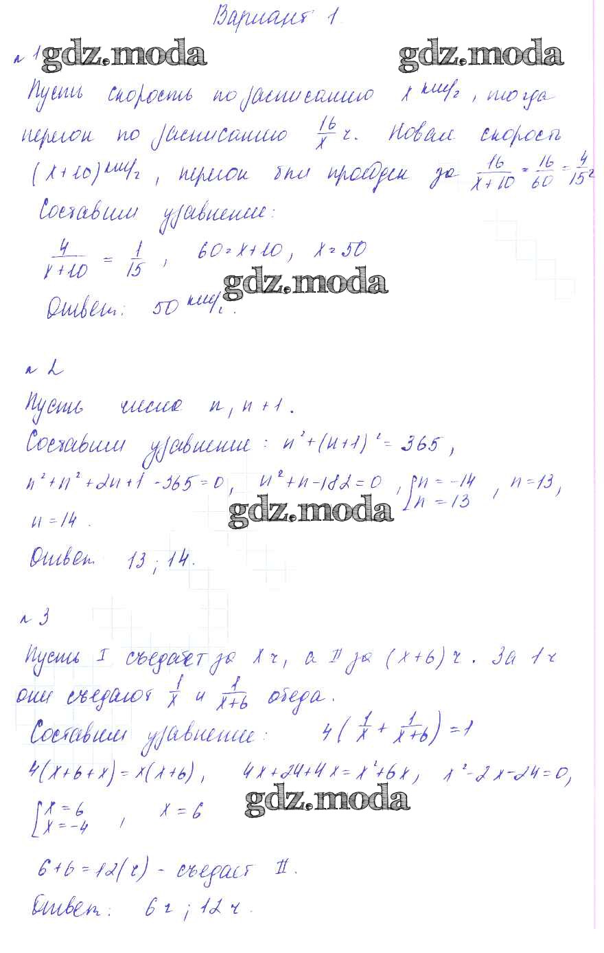 ОТВЕТ на задание № вариант 1 Дидактические материалы по Алгебре 9 класс Зив