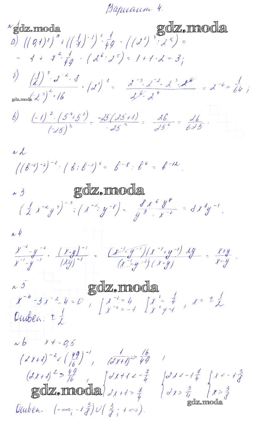 ГДЗ решение к заданию № вариант 4 Алгебра 9 класс Дидактические материалы Зив Б.Г. Виктория плюс 2013 ФГОС бесплатно на гдз.мода!