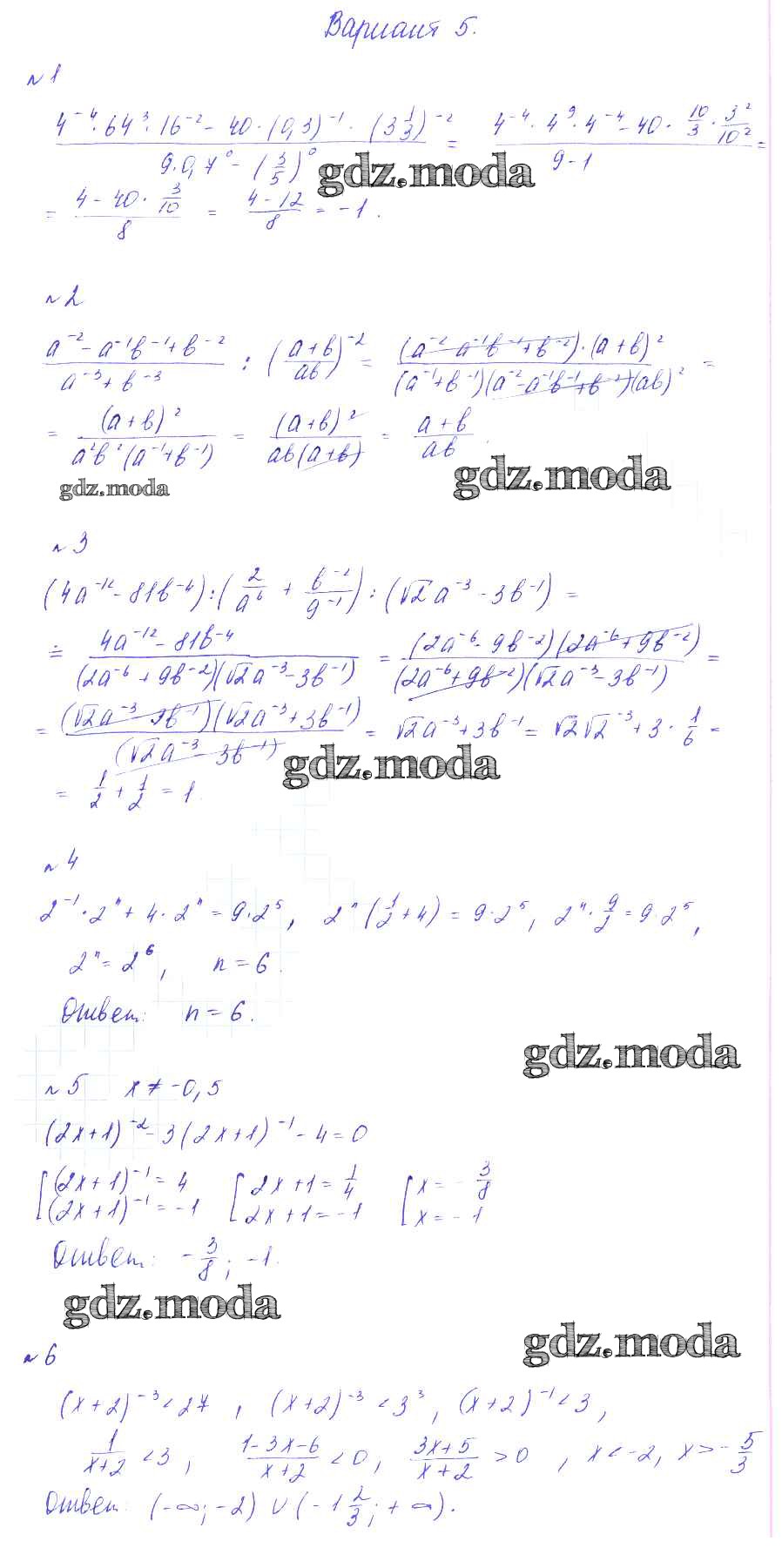 ГДЗ решение к заданию № вариант 5 Алгебра 9 класс Дидактические материалы Зив Б.Г. Виктория плюс 2013 ФГОС бесплатно на гдз.мода!