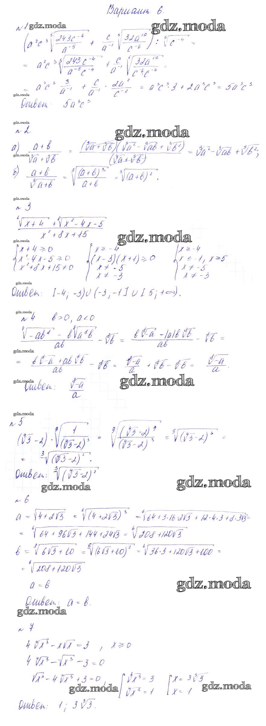 ГДЗ решение к заданию № вариант 6 Алгебра 9 класс Дидактические материалы Зив Б.Г. Виктория плюс 2013 ФГОС бесплатно на гдз.мода!