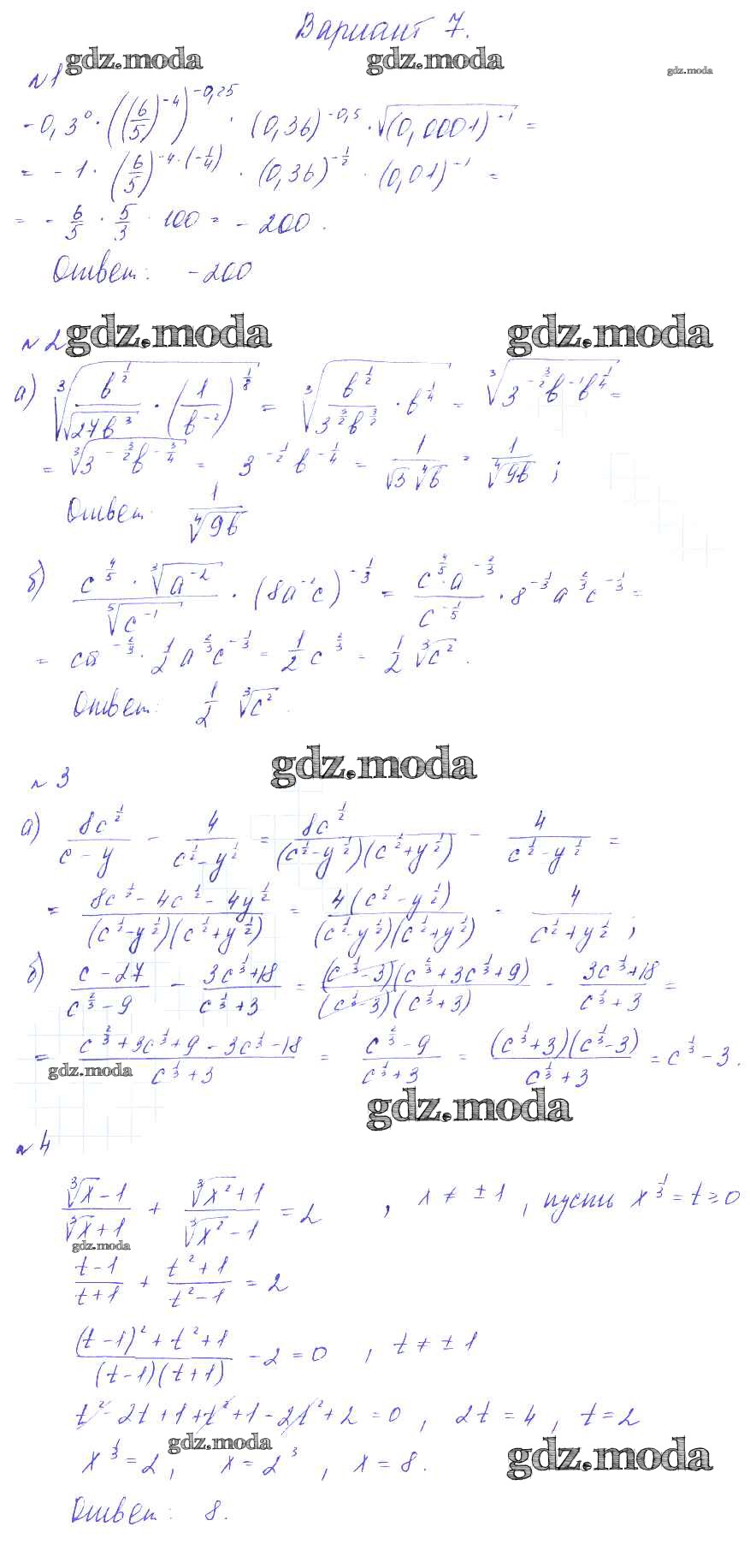 ГДЗ решение к заданию № вариант 7 Алгебра 9 класс Дидактические материалы Зив Б.Г. Виктория плюс 2013 ФГОС бесплатно на гдз.мода!