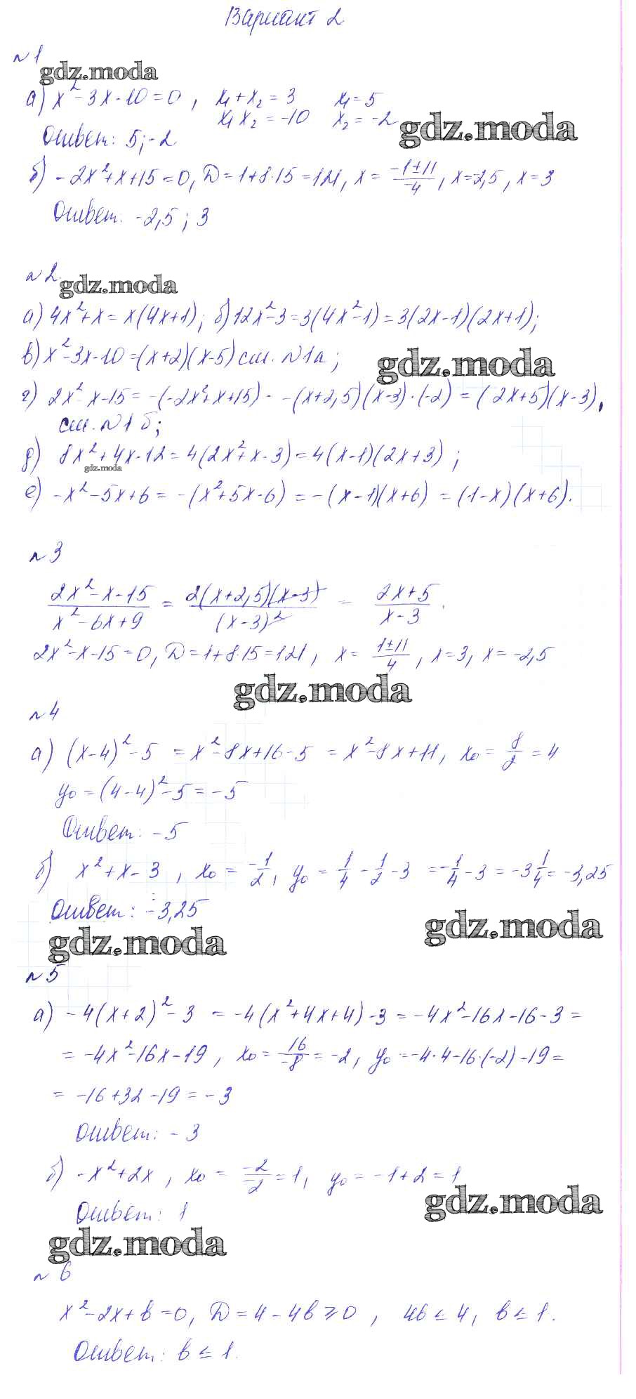 ГДЗ решение к заданию № вариант 2 Алгебра 9 класс Дидактические материалы Звавич Л.А. (к уч. Макарычева) Экзамен 2017 ФГОС бесплатно на гдз.мода!