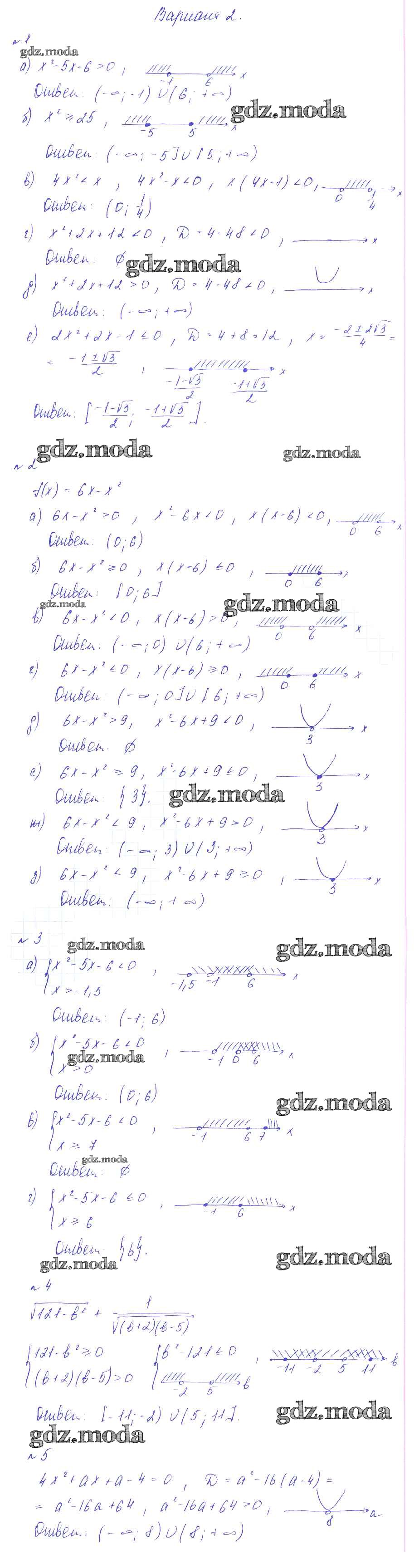 ГДЗ решение к заданию № вариант 2 Алгебра 9 класс Дидактические материалы Звавич Л.А. (к уч. Макарычева) Экзамен 2017 ФГОС бесплатно на гдз.мода!