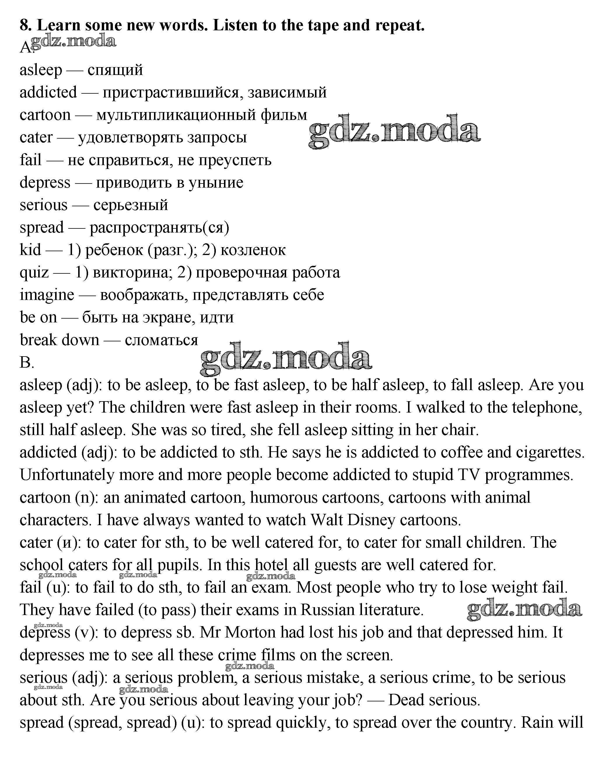 ГДЗ решение к заданию № 8 Английский язык 9 класс Новый курс Афанасьева О.В. Дрофа 2014 ФГОС бесплатно на гдз.мода!
