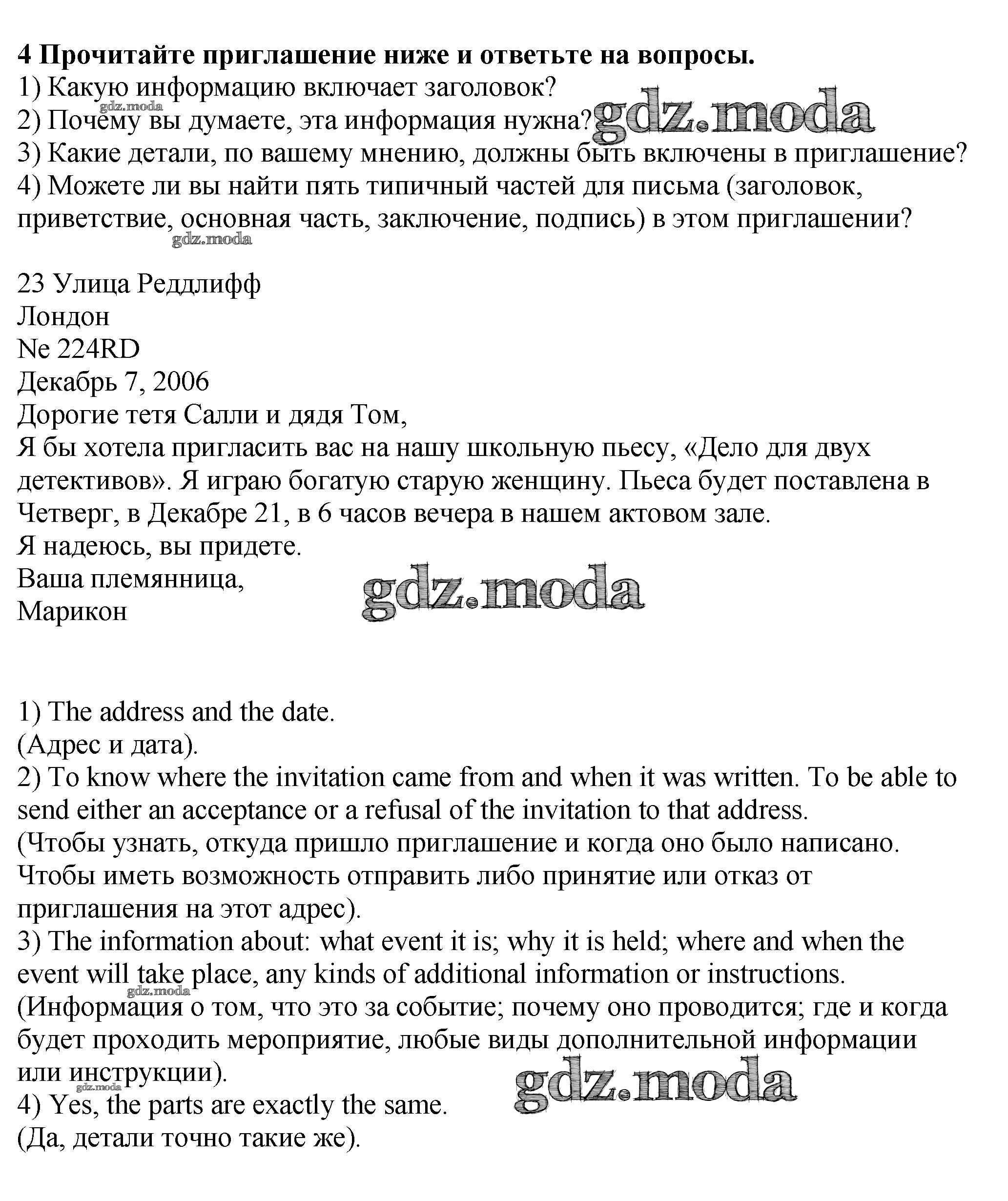 ОТВЕТ на задание № 4 Учебник по Английскому языку 9 класс Афанасьева Новый курс