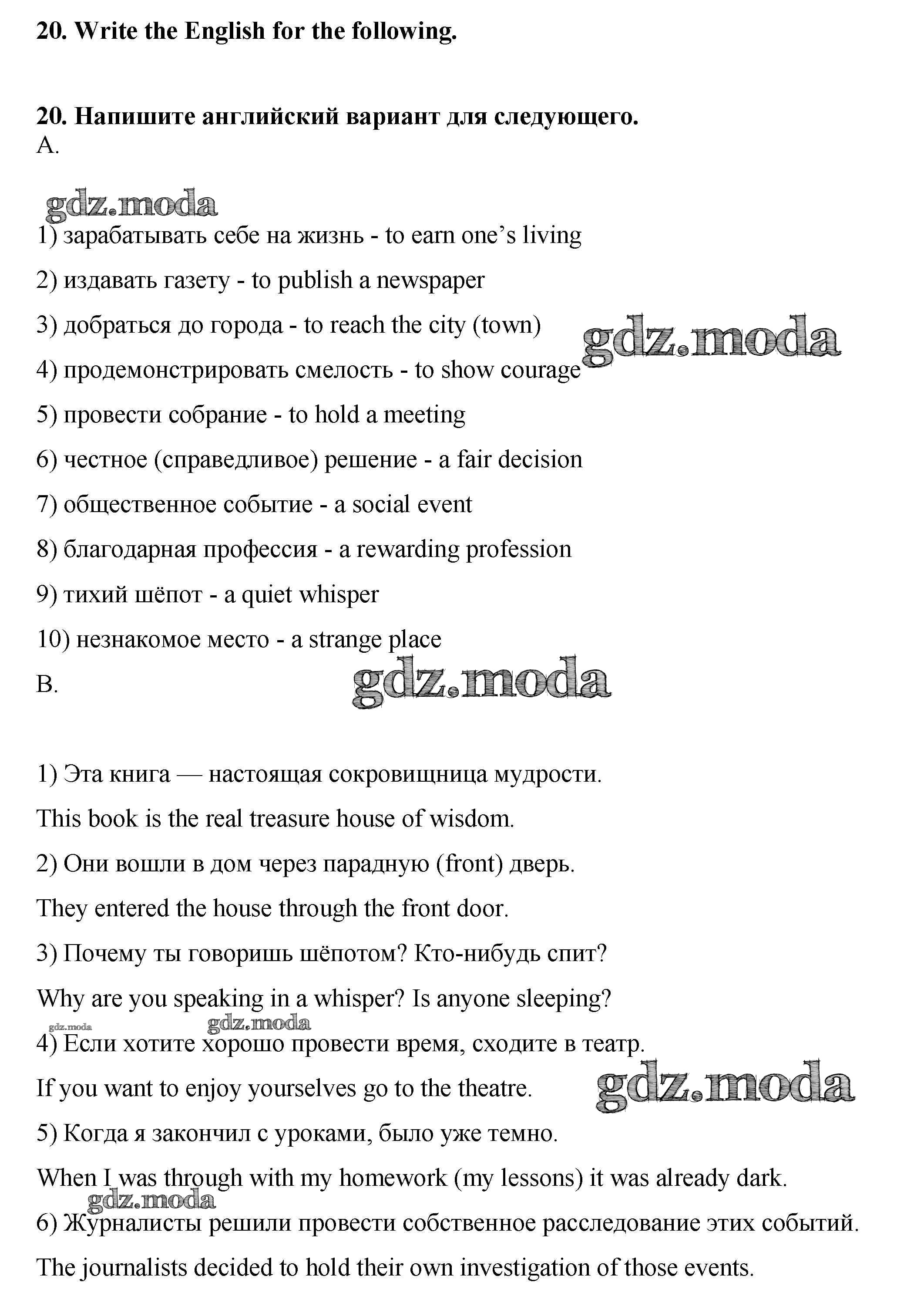 ГДЗ решение к заданию № 20 Английский язык 9 класс рабочая тетрадь Новый курс Афанасьева О.В. Дрофа 2014 ФГОС бесплатно на гдз.мода!