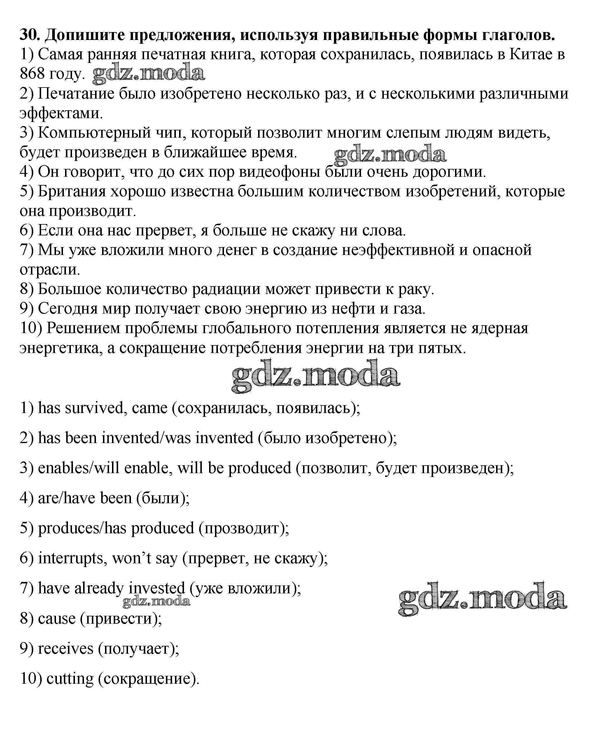 ГДЗ решение к заданию № 30 Английский язык 9 класс рабочая тетрадь Новый курс Афанасьева О.В. Дрофа 2014 ФГОС бесплатно на гдз.мода!