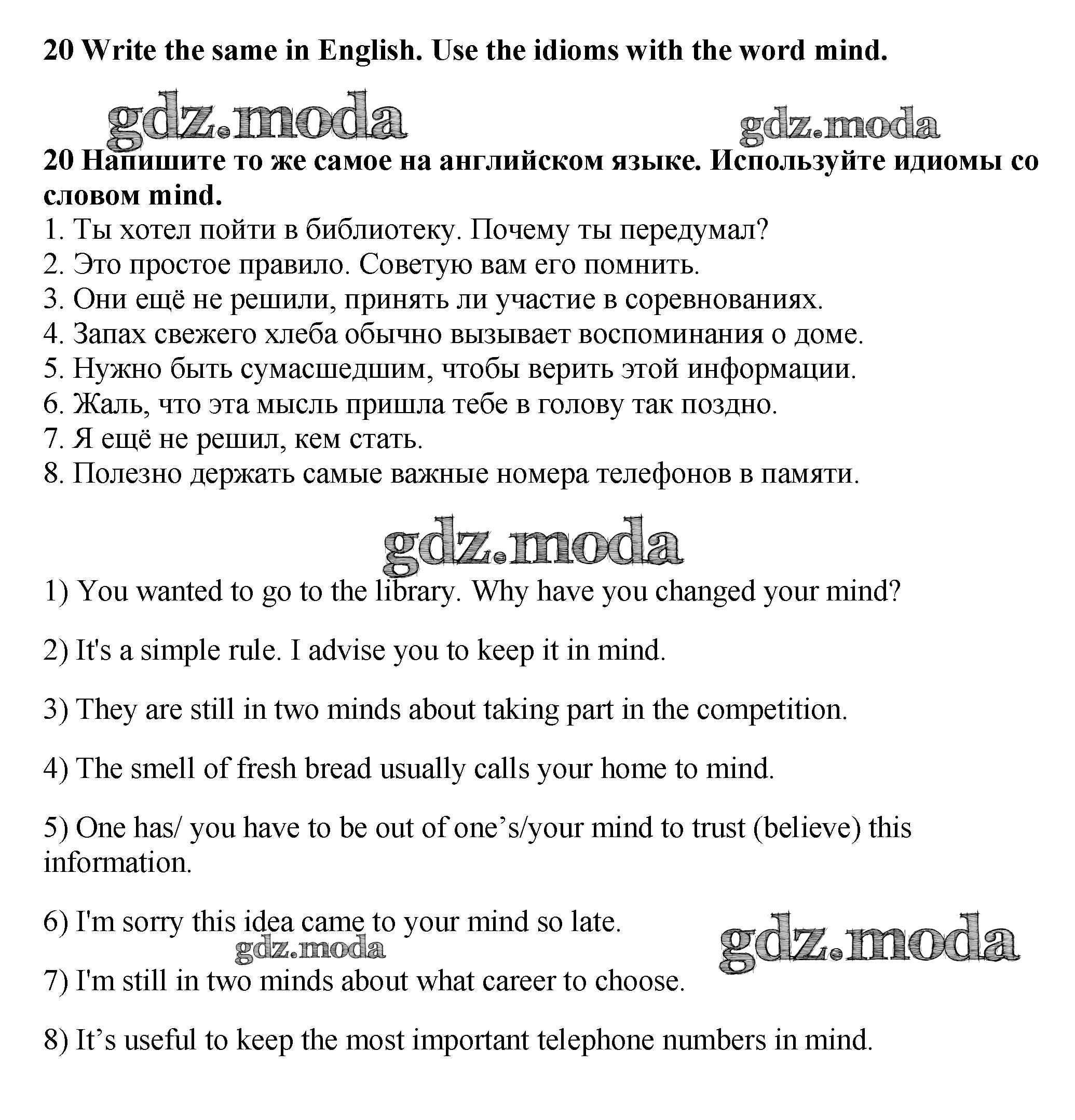 ГДЗ решение к заданию № 20 Английский язык 9 класс рабочая тетрадь Rainbow Афанасьева Дрофа 2016 ФГОС бесплатно на гдз.мода!