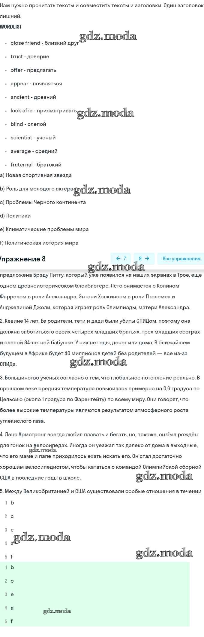 ОТВЕТ на задание № 8 Учебник по Английскому языку 9 класс Афанасьева Rainbow