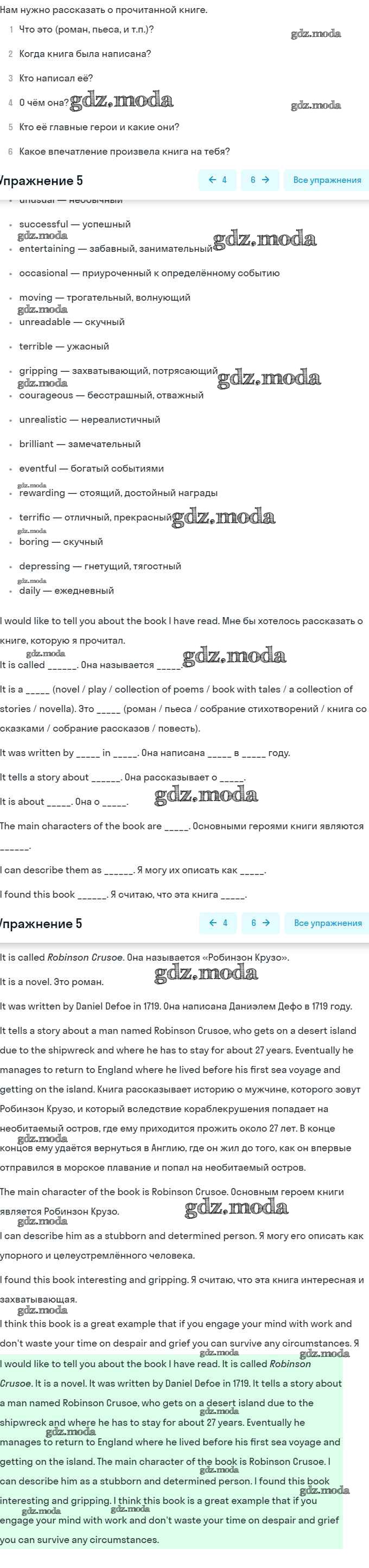 ОТВЕТ на задание № 5 Учебник по Английскому языку 9 класс Афанасьева Rainbow