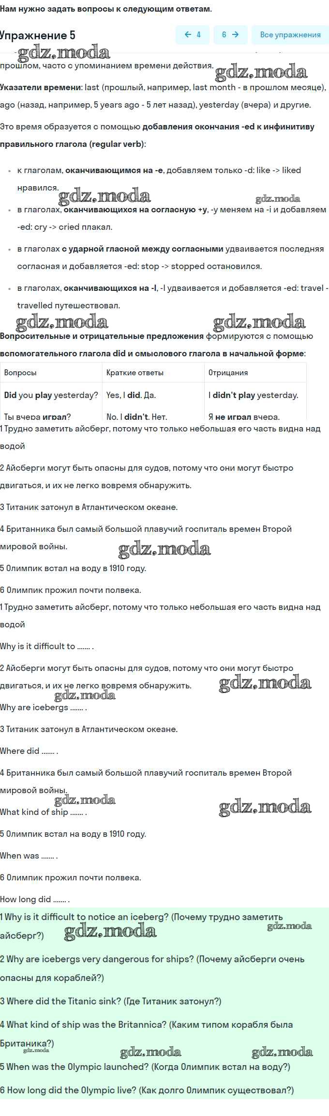 ОТВЕТ на задание № 5 Рабочая тетрадь по Английскому языку 9 класс Биболетова Enjoy English