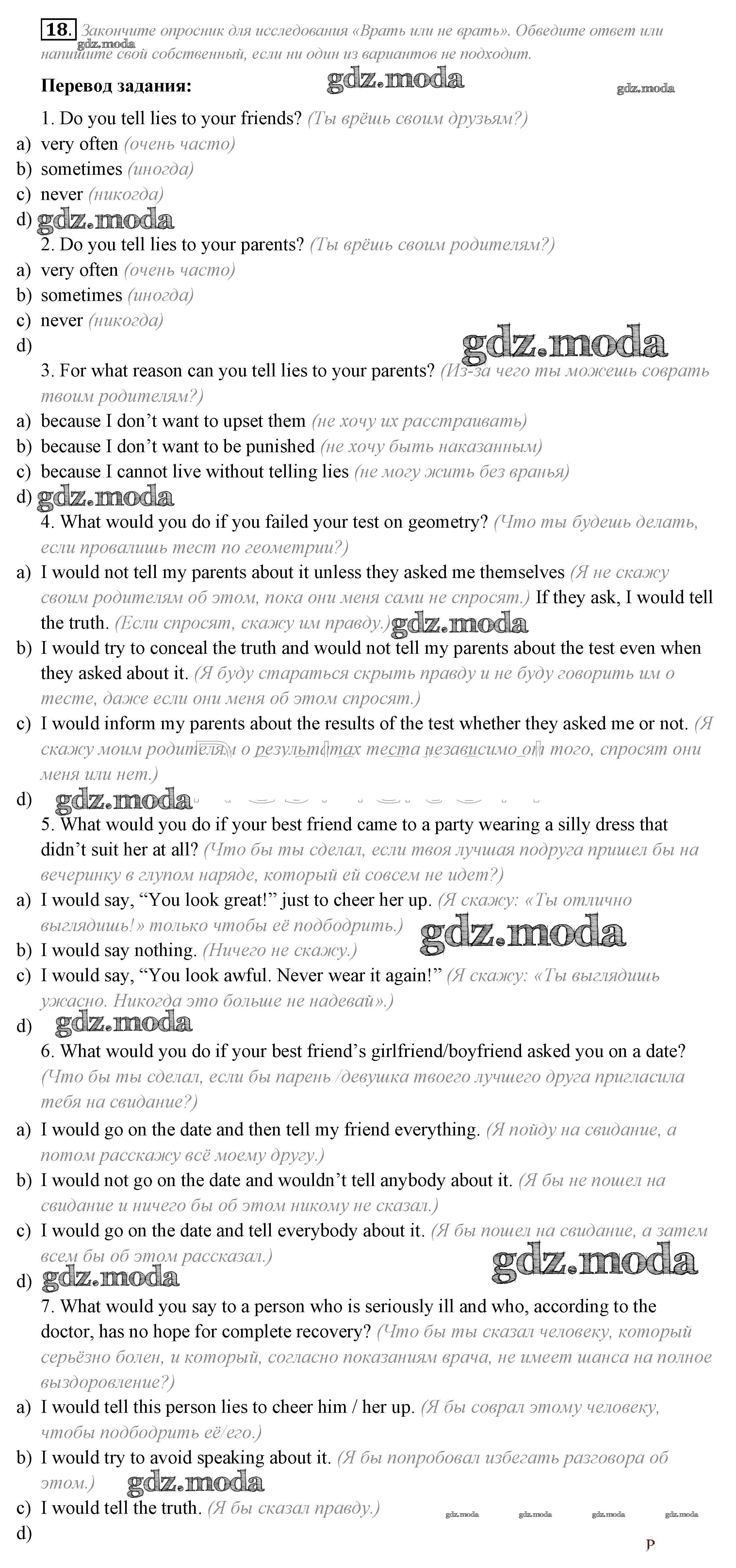 ОТВЕТ на задание № 18 Рабочая тетрадь по Английскому языку 9 класс Биболетова Enjoy English