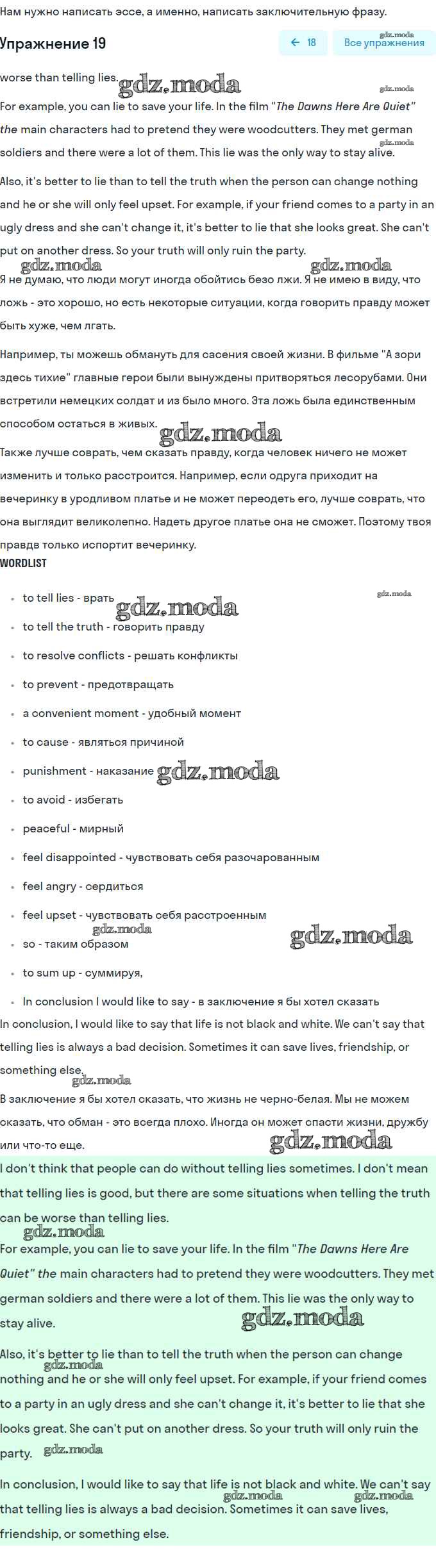 ОТВЕТ на задание № 19 Рабочая тетрадь по Английскому языку 9 класс Биболетова Enjoy English