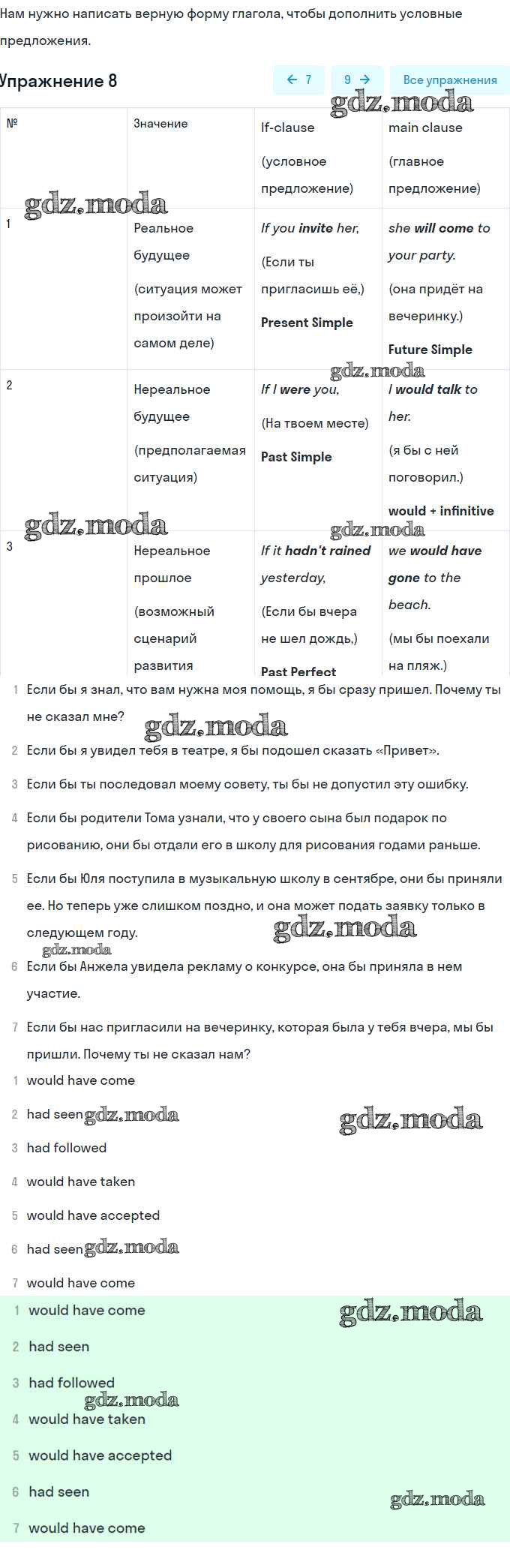 ОТВЕТ на задание № 8 Рабочая тетрадь по Английскому языку 9 класс Биболетова Enjoy English