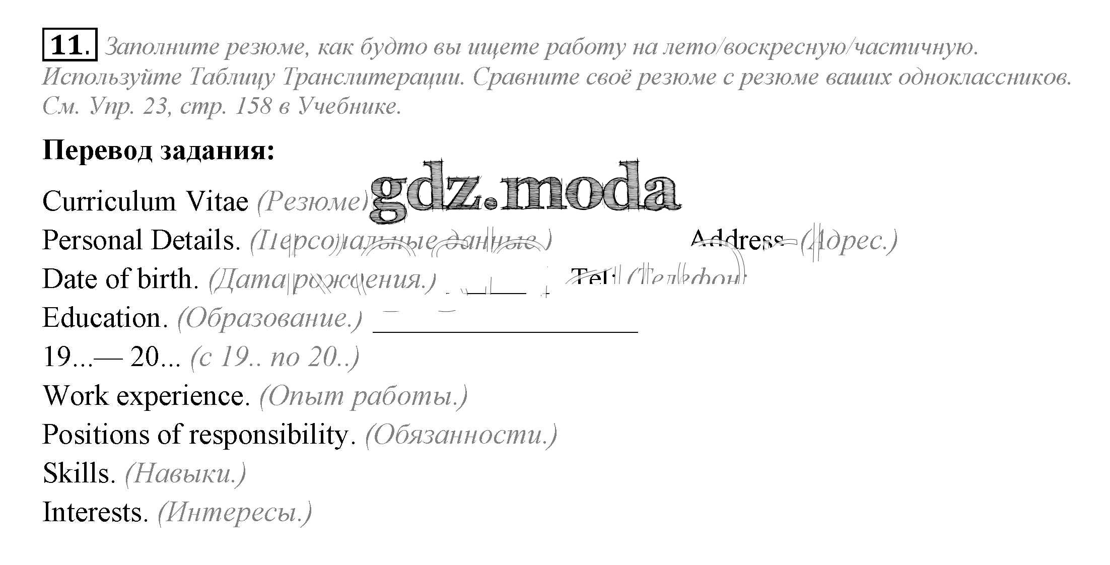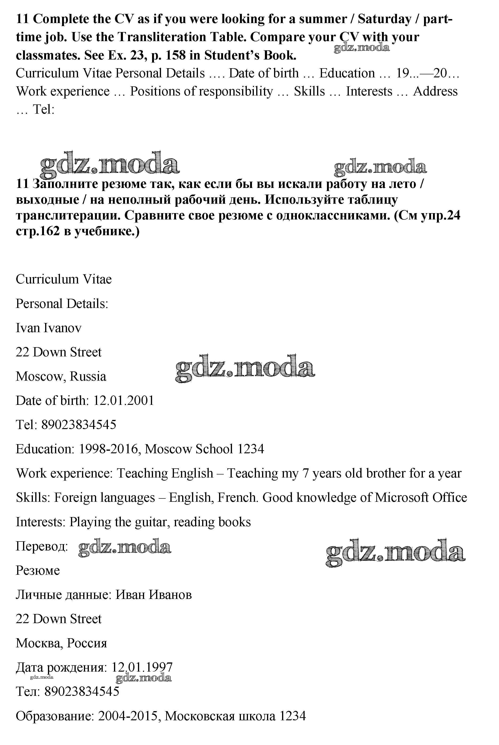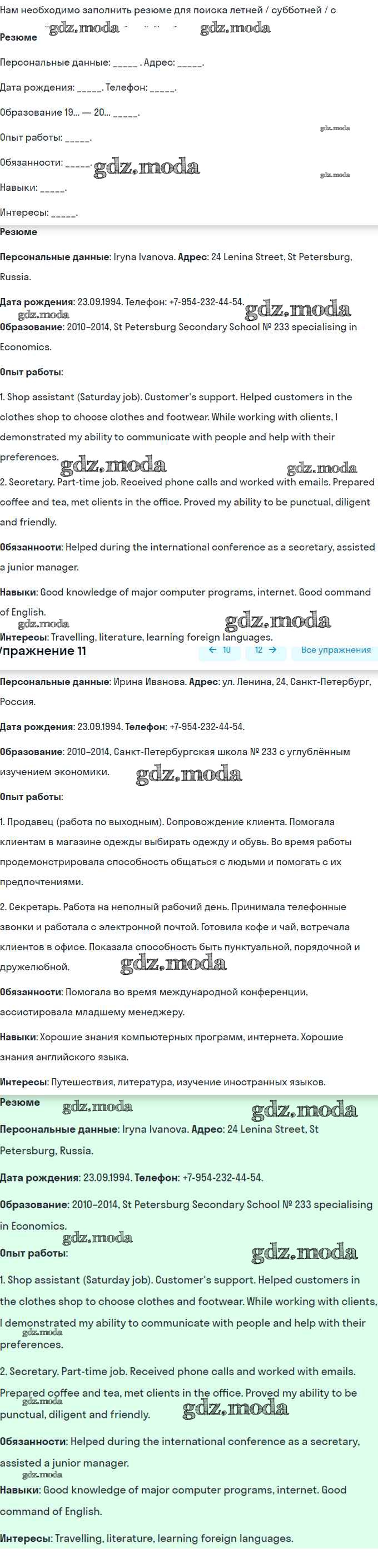 ОТВЕТ на задание № 11 Рабочая тетрадь по Английскому языку 9 класс Биболетова Enjoy English