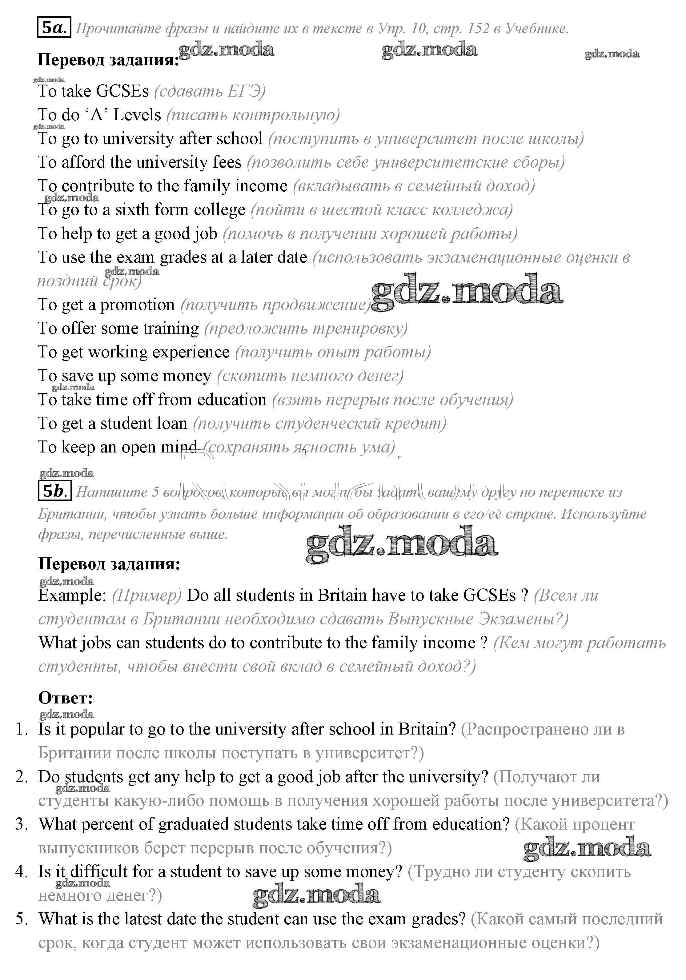 ОТВЕТ на задание № 5 Рабочая тетрадь по Английскому языку 9 класс Биболетова Enjoy English