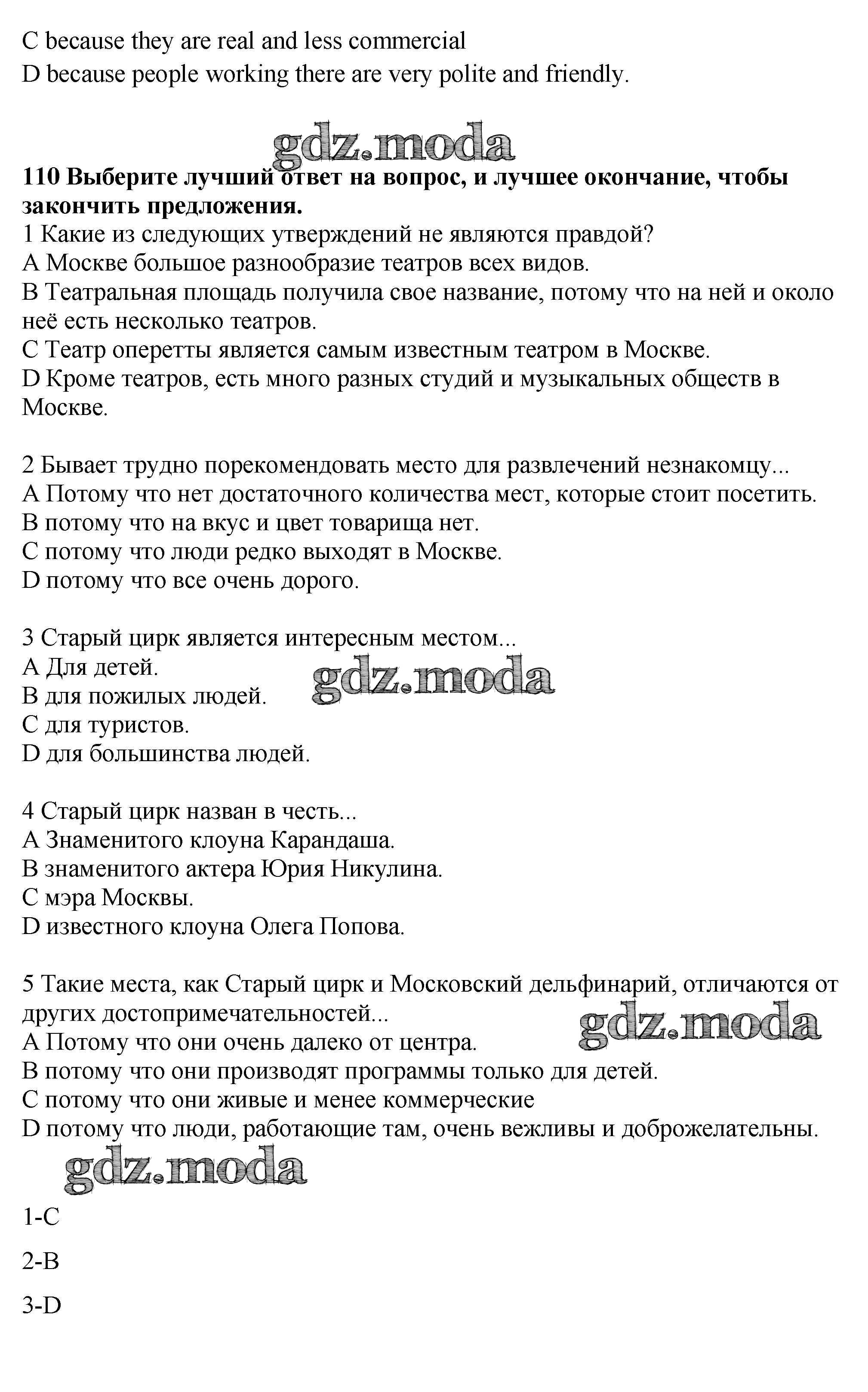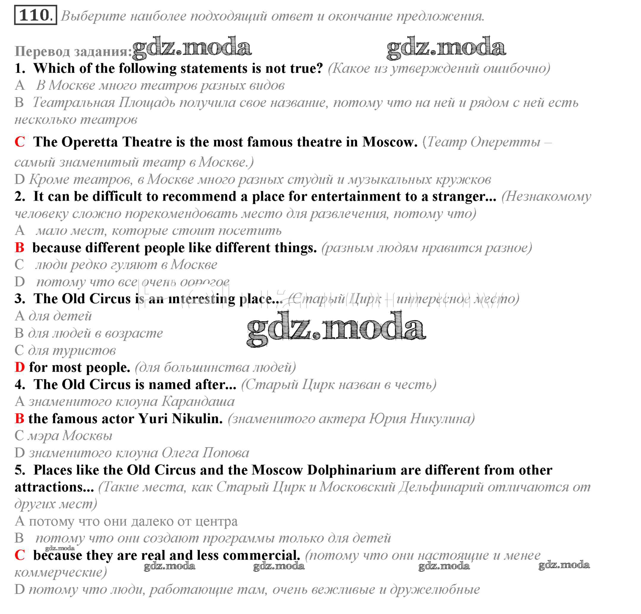 ОТВЕТ на задание № 110 Учебник по Английскому языку 9 класс Биболетова УМК