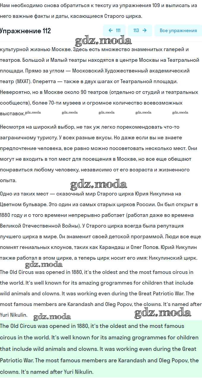 ОТВЕТ на задание № 112 Учебник по Английскому языку 9 класс Биболетова Enjoy English