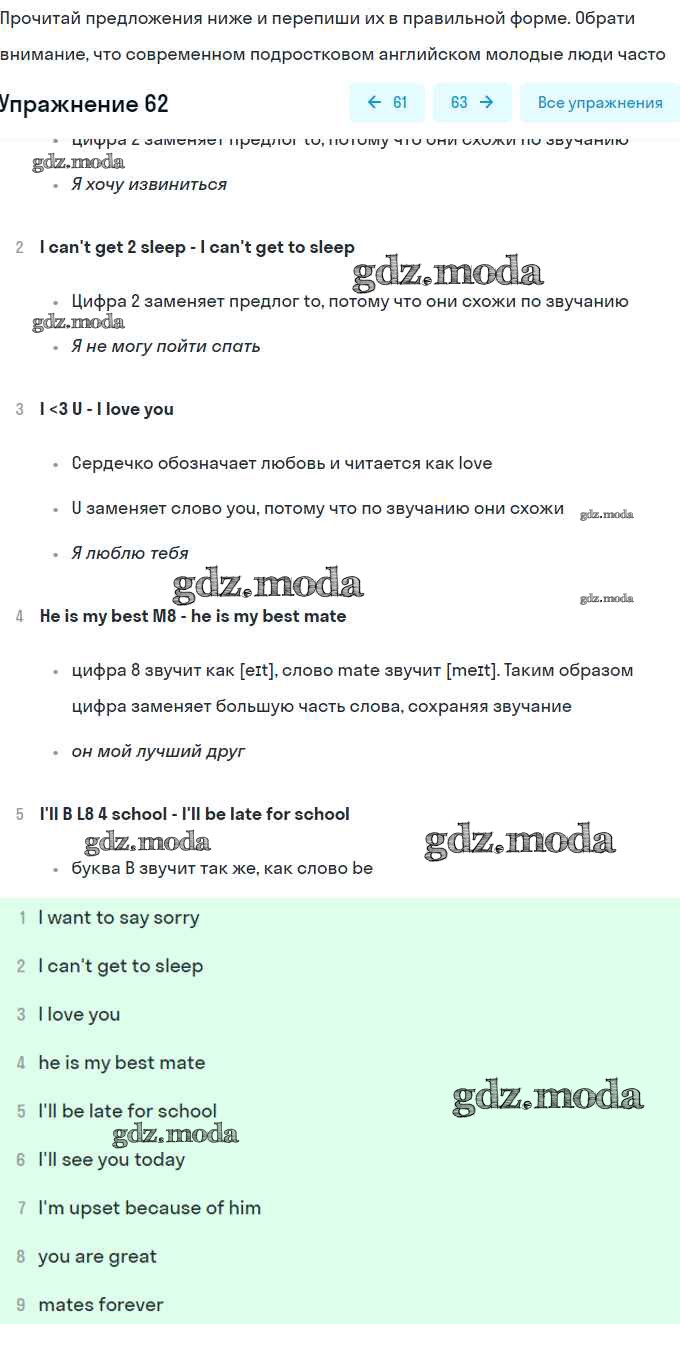 ОТВЕТ на задание № 62 Учебник по Английскому языку 9 класс Биболетова Enjoy English