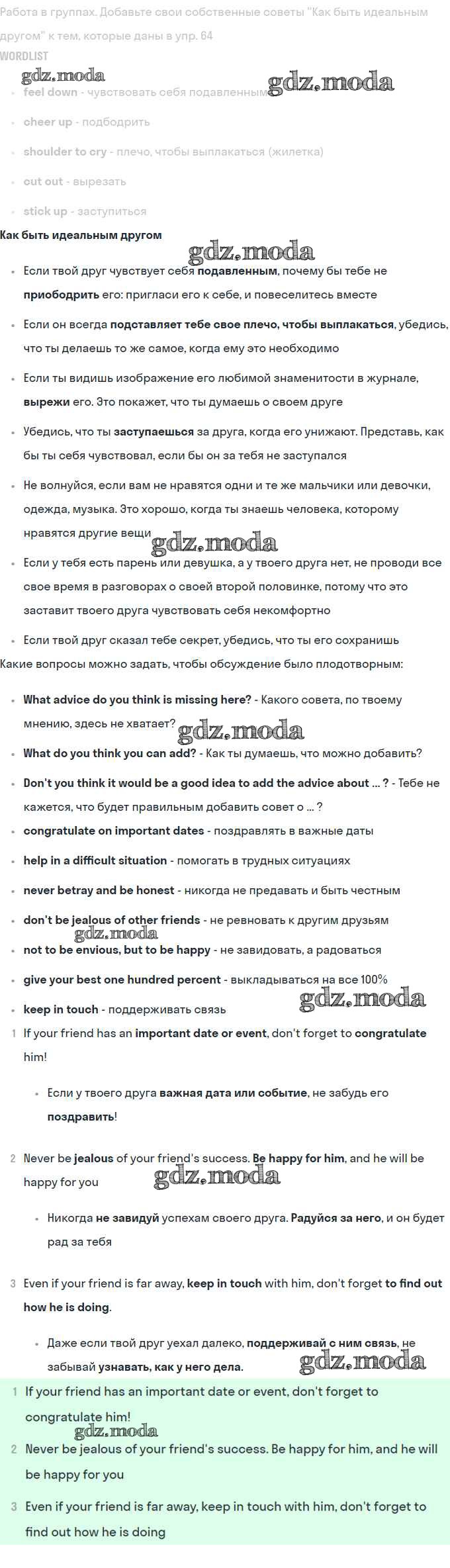 ОТВЕТ на задание № 65 Учебник по Английскому языку 9 класс Биболетова Enjoy English