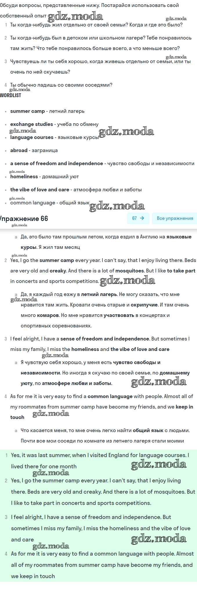 ОТВЕТ на задание № 66 Учебник по Английскому языку 9 класс Биболетова Enjoy English