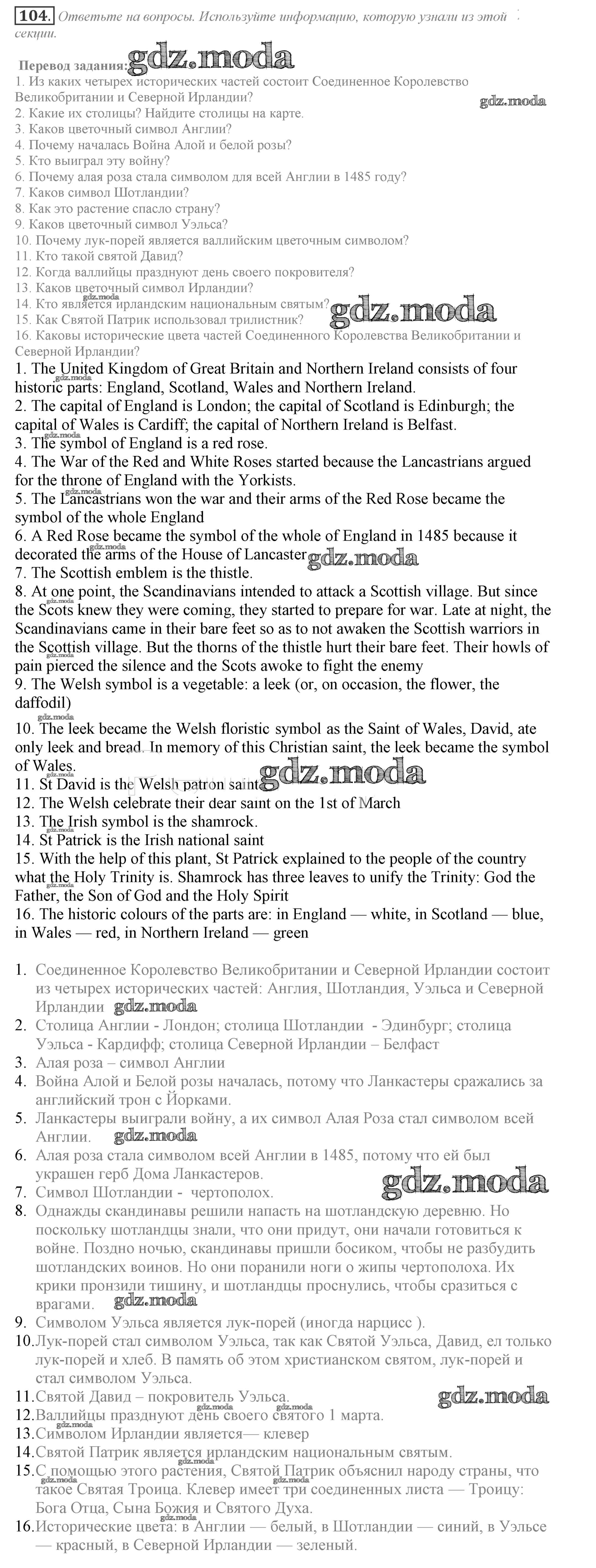 ОТВЕТ на задание № 104 Учебник по Английскому языку 9 класс Биболетова УМК