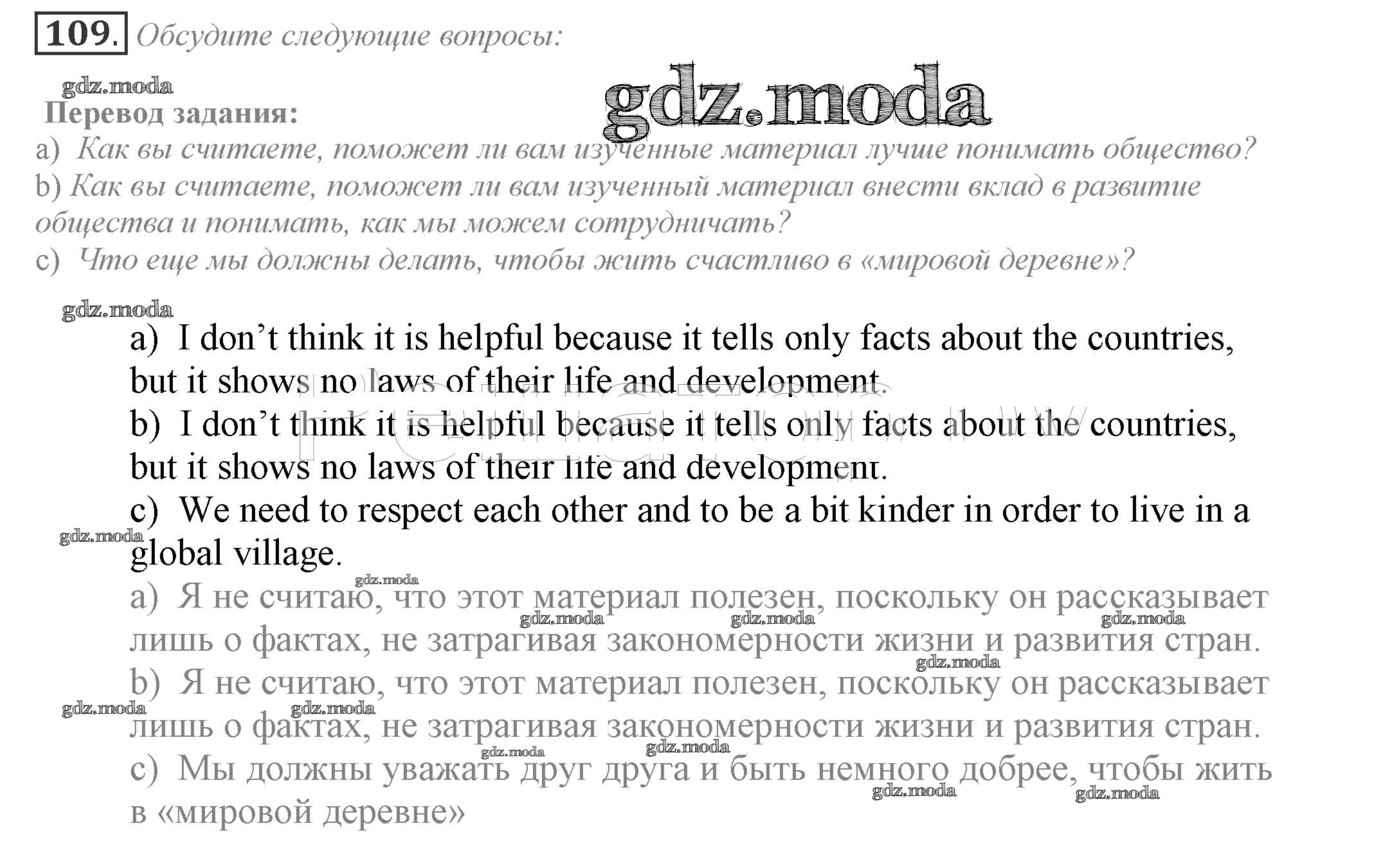 ОТВЕТ на задание № 109 Учебник по Английскому языку 9 класс Биболетова УМК
